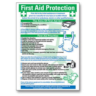 Μεγάλη αφίσα από την SP Services "Προστασία Α' Βοηθειών". Ιδανική για χώρους οπού χρειάζεται να υπάρχει ένας τρόπος υπενθύμισης οδηγιών για την προστασία που πρέπει ένα άτομο να λαμβάνει κατά την διάρκεια χορήγησης Α' Βοηθειών.