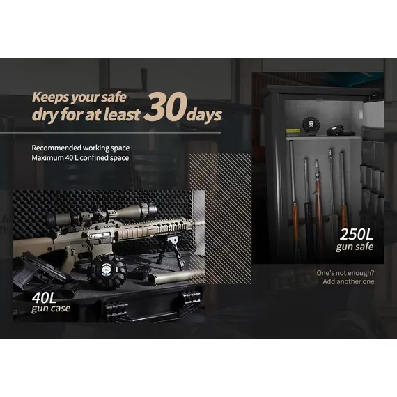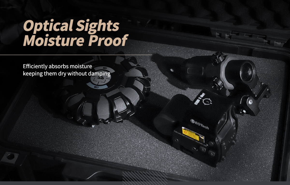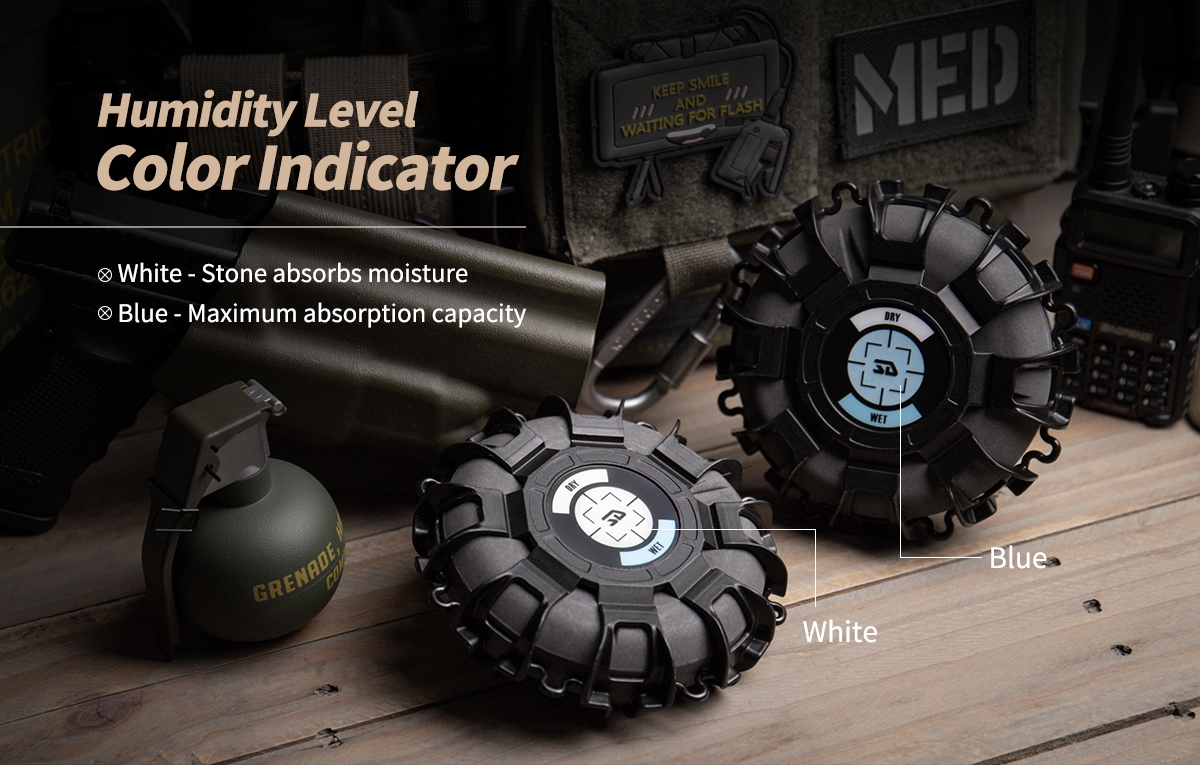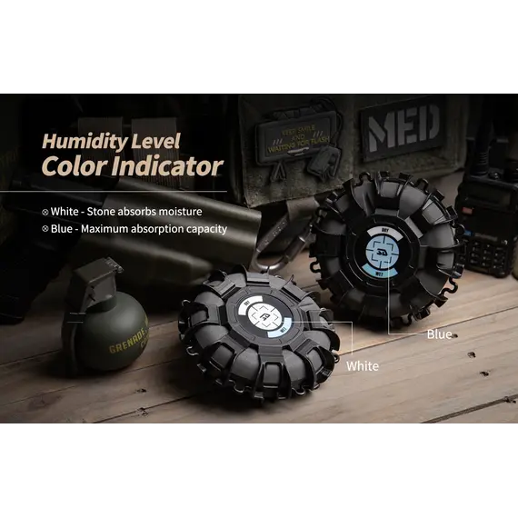Πέτρα αφυγραντήρας που χρησιμοποιείται σε κλειστούς χώρους, βαλίτσες, ντουλάπια για την προστασία από την υγρασία όπλων, πυρομαχικών, οπτικών συστημάτων, φωτογραφικών μηχανών, ηλεκτρονικών συσκευών, drones κ.α.