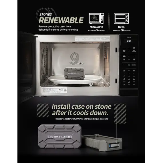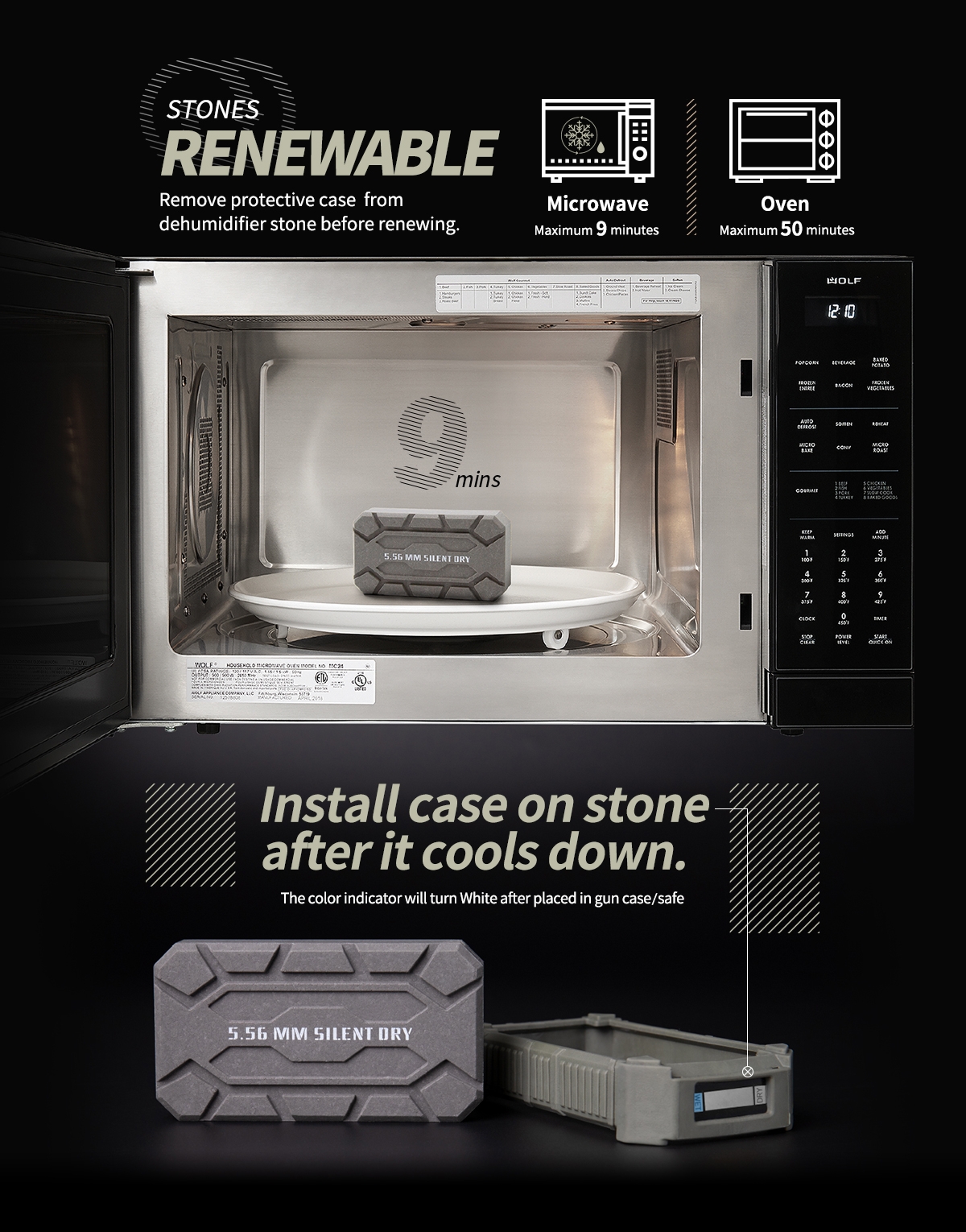 Πέτρα αφυγραντήρας που χρησιμοποιείται σε κλειστούς χώρους, βαλίτσες, ντουλάπια για την προστασία από την υγρασία όπλων, πυρομαχικών, οπτικών συστημάτων,