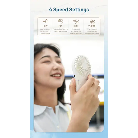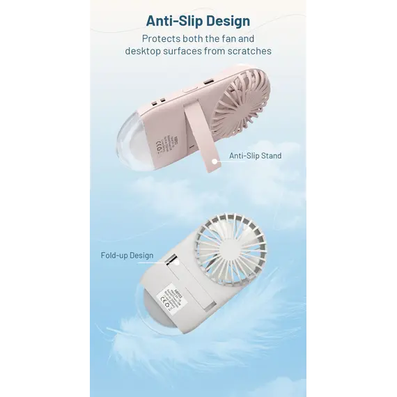 Μετατρέπεται εύκολα από ανεμιστήρας χειρός σε επιτραπέζιος ανεμιστήρας με σταντ.