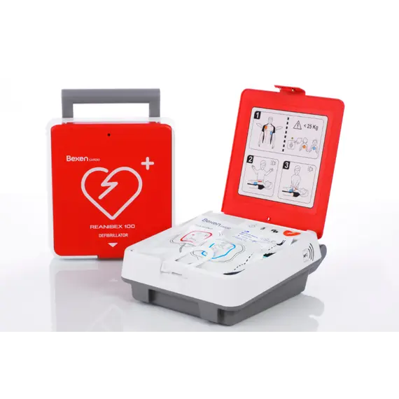 Ο Reanibex 100 AED Automatic είναι ένας προηγμένος, πλήρως αυτόματος εξωτερικός απινιδωτής ευρωπαϊκής κατασκευής, σχεδιασμένος για άμεση και αποτελεσματική αντιμετώπιση περιστατικών αιφνίδιας καρδιακής ανακοπής. Με βάρος μόλις 1,95 kg και εργονομική λαβή, αποτελεί ιδανική επιλογή για επαγγελματικούς χώρους, δημόσιους χώρους αλλά και επιχειρήσεις που δίνουν προτεραιότητα στην ασφάλεια.