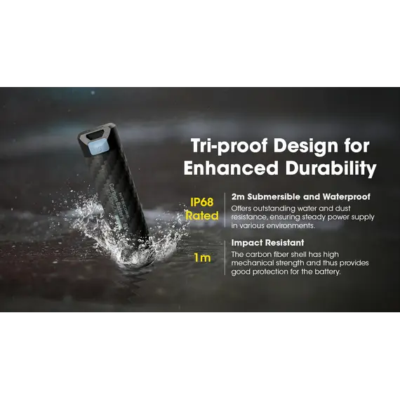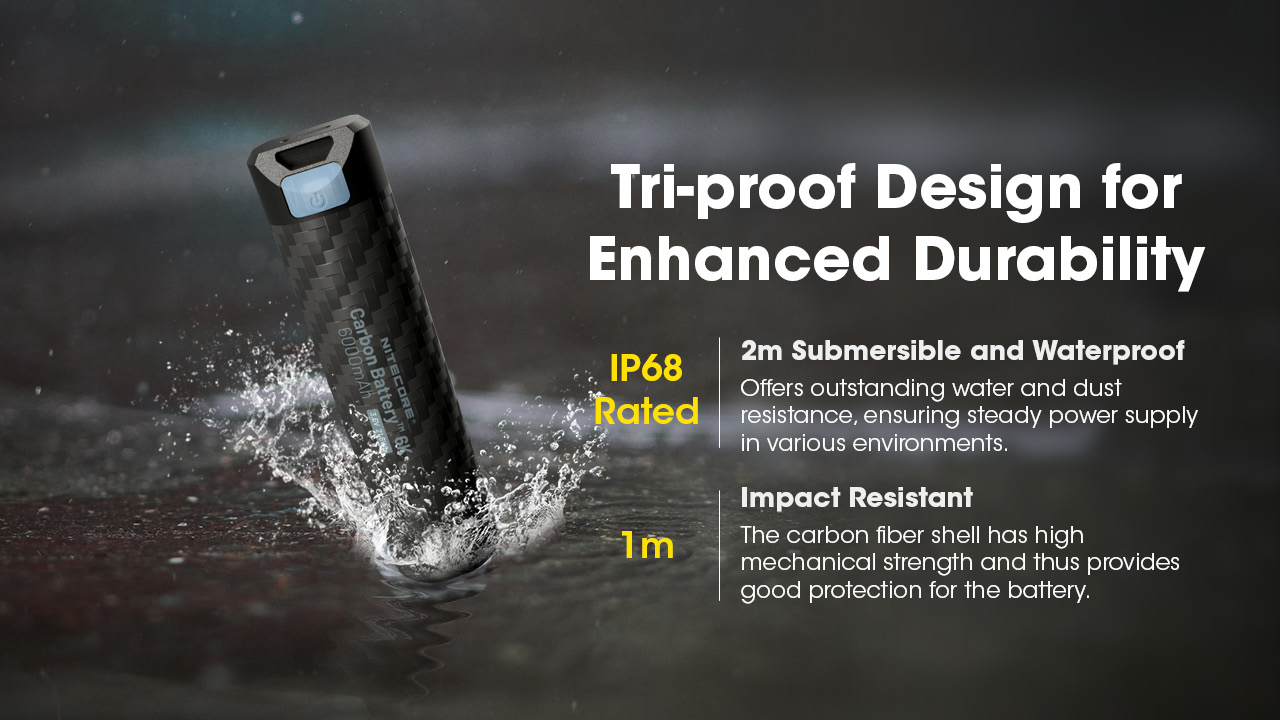 Το κέλυφος από ανθρακονήματα έχει υψηλή μηχανική αντοχή έτσι ώστε να παρέχει καλή προστασία στην εσωτερική μπαταρία.