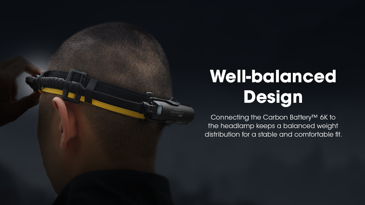 Συνδέοντας το Carbon Battery™ 6K με τον φακό κεφαλής , διατηρεί μία ισορροπημένη κατανομή του βάρους για σταθερή και άνετη εφαρμογή.