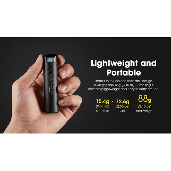 Χάρη στο σχεδιασμό του κελύφους με ανθρακονήματα , ζυγίζει μόλις 88g – εξαιρετικά ελαφριά ώστε να μεταφέρεται με ευκολία παντού.