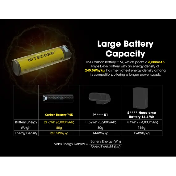 Το Carbon Battery ™ 6K που περιλαμβάνει μία επαναφορτιζόμενη μπαταρία ιόντων λιθίου (Li-ion) μεγάλης χωρητικότητας 6000mAh με πυκνότητα ενέργειας της τάξης των 245,5Wh/Kg,