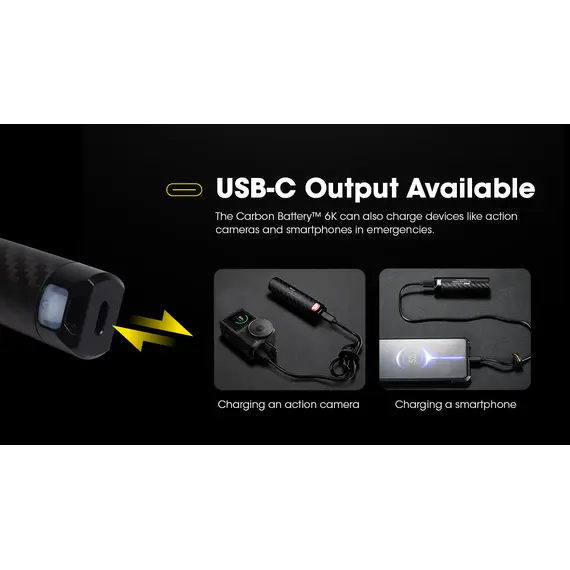 Το Carbon Battery™ 6K μπορεί επίσης να φορτίσει συσκευές όπως action κάμερες, κινητά τηλέφωνα κ.α. σε περίπτωση ανάγκης.