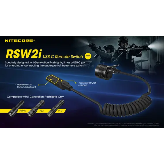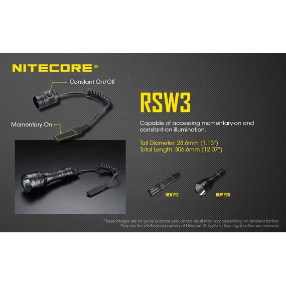 ΔΙΑΚΟΠΤΗΣ ΜΕ ΣΠΙΡΑΛ, NITECORE, RSW2i, for P30i, I4000R, P20i. P10i Απομακρυσμένος διακόπτης με καλώδιο σπιράλ.