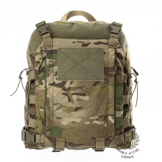 Στην πίσω εξωτερική επιφάνεια διαθέτει αφαιρούμενη θήκη (διαμέρισμα), η οποία μπορεί να δεχθεί και αντιβαλλιστική πλάκα 25 x 30 cm προστατεύοντας τα ευαίσθητα μεταφερόμενα υλικά εντός του σακιδίου, επικοινωνίες κλπ. Ανάμεσα στα δύο διαμερίσματα δύναται να μεταφερθεί κράνος ενώ η απόσταση μεταξύ των δύο διαμερισμάτων ρυθμίζεται με ιμάντες στο κάτω μέρος και με ελαστικές αρτάνες στα πλάγια.