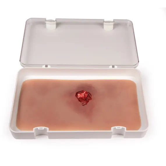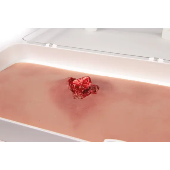 Αυτό το ομοίωμα δείχνει ένα ανοιχτό κάταγμα μικρότερου οστού άκρου. Με γραμμή για λειτουργία αιμορραγίας. Το ομοίωμα προσκολλάται σε δέρμα ή σε πρόπλασμα. Διατίθεται προαιρετική κόλλα δέρματος για περισσότερη εκπαίδευση ή βελτιωμένη πρόσφυση.