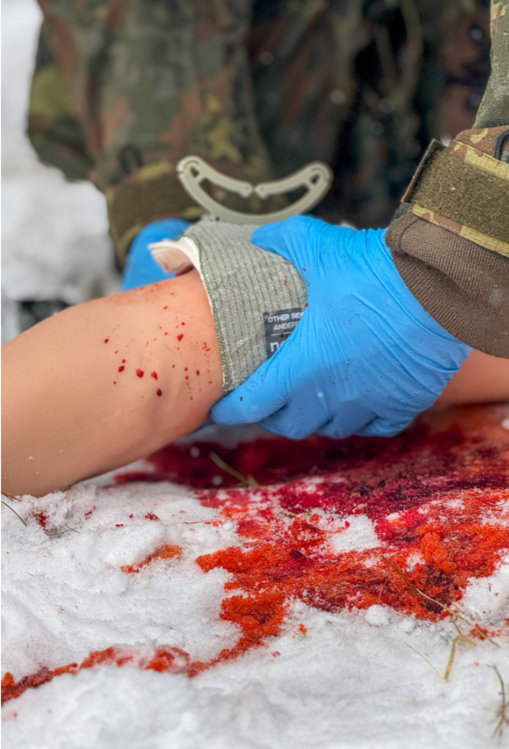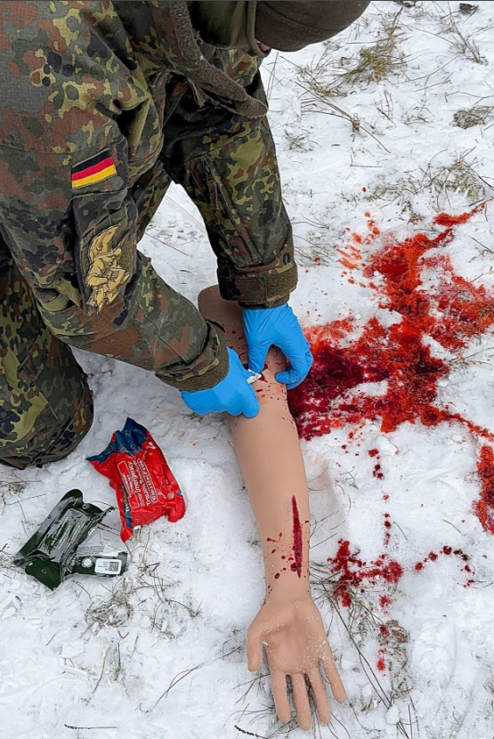 Το μοντέλο υποστηρίζει πρακτική εφαρμογής περιχειρίδας (tourniquet) υψηλά στο άνω άκρο και τεχνικές wound packing (συσκευασίας τραύματος) σύμφωνα με τις διεθνείς κατευθυντήριες γραμμές TCCC, επιτρέποντας στους εκπαιδευόμενους να εξασκήσουν πλήρεις δεξιότητες ελέγχου αιμορραγιών.