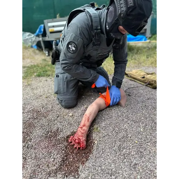 Το μοντέλο προσομοιώνει με ακρίβεια την όψη και την αίσθηση μιας πραγματικής αιμορραγίας, προσφέροντας στους χρήστες μια καθηλωτική εμπειρία για την εκμάθηση και εφαρμογή αιμοστατικού ιμάντα σε ρεαλιστικό περιβάλλον.