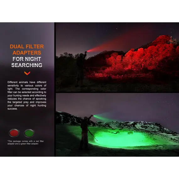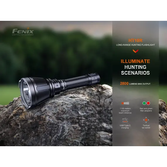 Φακός Fenix HT18R Επαναφορτιζόμενος με USB +ALG-18+AER-05 Ο Φακός Fenix HT18R είναι ένας φακός μεγάλων αποστάσεων πολλαπλών χρήσεων που διαθέτει απίστευτη απόδοση εκτοξεύοντας μέγιστο 2800 lumens και απόσταση δέσμης έως και 1100 μέτρα. Είναι εφοδιασμένος με διπλούς ουραίους διακόπτες με τους οποίους ενεργοποιούνται και όλες τις λειτουργίες φωτισμού, συμπεριλαμβανομένων των SOS σε περίπτωση έκτακτης ανάγκης. Επιλέξετε εύκολα και γρήγορα ανάμεσα σε έξι λειτουργίες φωτισμού, χρησιμοποιώντας τον διπλό επιχειρησιακό ουραίου διακόπτη. Ο Φακός Fenix HT18R είναι ανθεκτικός στις κρούσεις και αδιάβροχος (IP68), όλα τα παραπάνω χαρακτηριστικά καθιστούν τον Φακό HT18R ιδανικό για χρήση απο κυνηγούς και διασώστες. Η συμπεριλαμβανόμενη μπαταρία ιόντων λιθίου 5000 mAh μπορεί να φορτιστεί άνετα μέσω της θύρας USB Type-C του φακού, καθιστώντας τον φακό Fenix HT18R το ιδανικό εργαλείο για επιχειρησιακή απόδοση υψηλής έντασης και μεγάλης διάρκειας. Ο φακός Fenix HT18R συνοδεύετε από 2 φίλτρα ένα κόκκινο και ένα πράσινο. Στην συγκερκιμένη έκδοση πέρνετε δώρο το ALG-18 tactical mount και το AER-05 gel switch, για να μπορείτε να προσαρμόσετε τον Fenix HT18R στον οπλισμό σας.