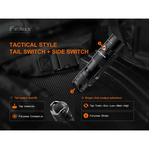 Ο Φακός Fenix PD25R είναι ένας φακός υψηλής ποιότητας που έχει σχεδιαστεί για όσους απαιτούν απαράμιλλη αξιοπιστία και απόδοση. Με μέγιστη φωτεινότητα 800 lumens και εντυπωσιακή δέσμη 250 μέτρων, διασφαλίζει ότι κάθε μονοπάτι που ακολουθείτε είναι έντονα φωτισμένο και καθαρό. Ο Φακός Fenix PD25R προσφέρει την άνεση της γρήγορης φόρτισης USB Type-C. Με εκπληκτικό χρόνο λειτουργίας 70 ώρες, αυτός ο φακός είναι ένας ανεκτίμητος σύντροφος για εκτεταμένες υπαίθριες περιπέτειες, διασφαλίζοντας ότι δεν θα μείνετε ποτέ στο σκοτάδι. Είναι σχολαστικά σχεδιασμένος με ένα ευέλικτο κλιπ σώματος 2 κατευθύνσεων, επιτρέποντας τη μεταφορά χωρίς χέρια όποτε χρειάζεται. Κανένα περιβάλλον δεν είναι πολύ σκληρό για το Fenix PD25R, καθώς διαθέτει αξιοσημείωτη αδιάβροχη βαθμολογία (IP68), εξασφαλίζοντας βέλτιστη λειτουργικότητα ακόμη και στις πιο υγρές συνθήκες. Επιλέξτε το Fenix PD25R και μπείτε σε έναν κόσμο ασυναγώνιστου φωτισμού και διαρκούς ποιότητας. Ο Φακός Fenix PD25R έχει μνήμη, δηλαδή ανάβει στο επίπεδο φωτεινότητας που επιλέξατε κατά την τελευταία χρήση του.