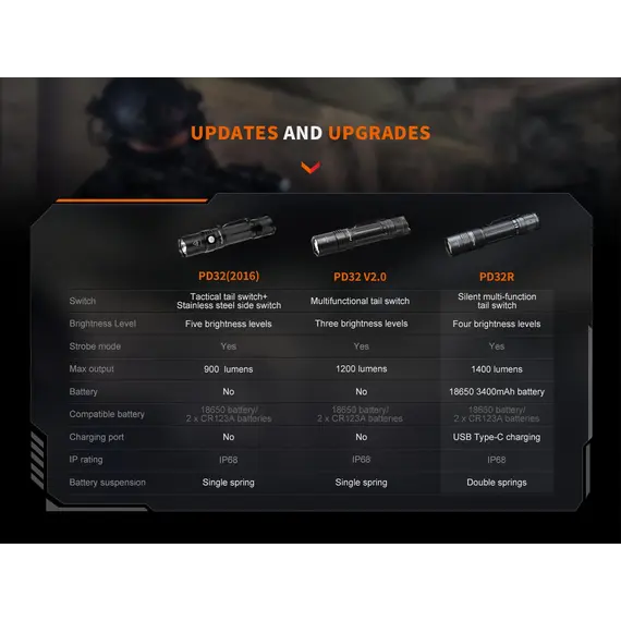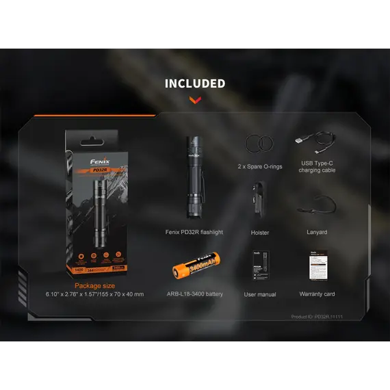 Φακός Fenix PD32R Επαναφορτιζόμενος με USB