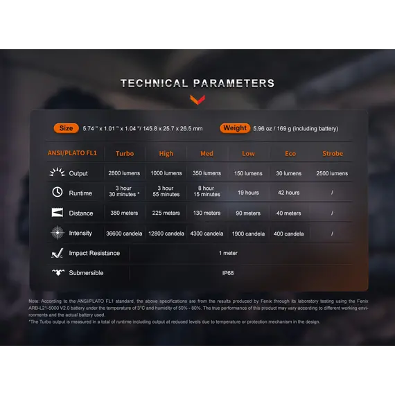 Λειτουργίες Φωτισμού: 5 επίπεδα φωτεινότητας, Στροβιλισμός Τύπος λαμπτήρα: Luminus SFT70 LED Θερμοκρασία Χρώματος: 6500K