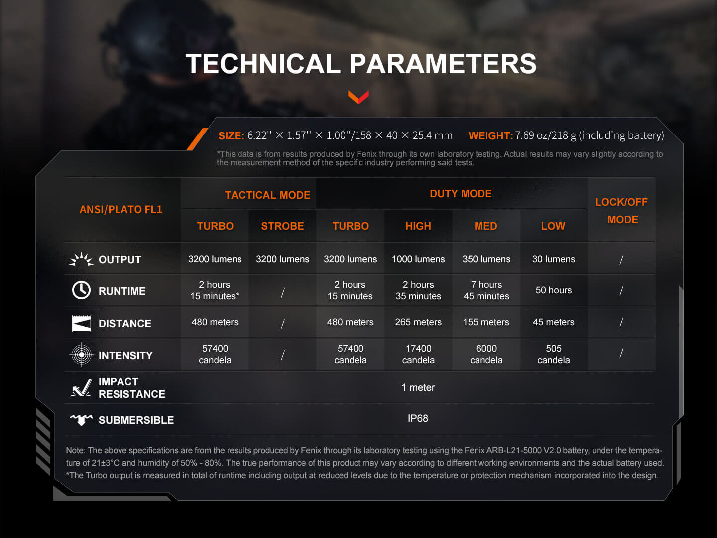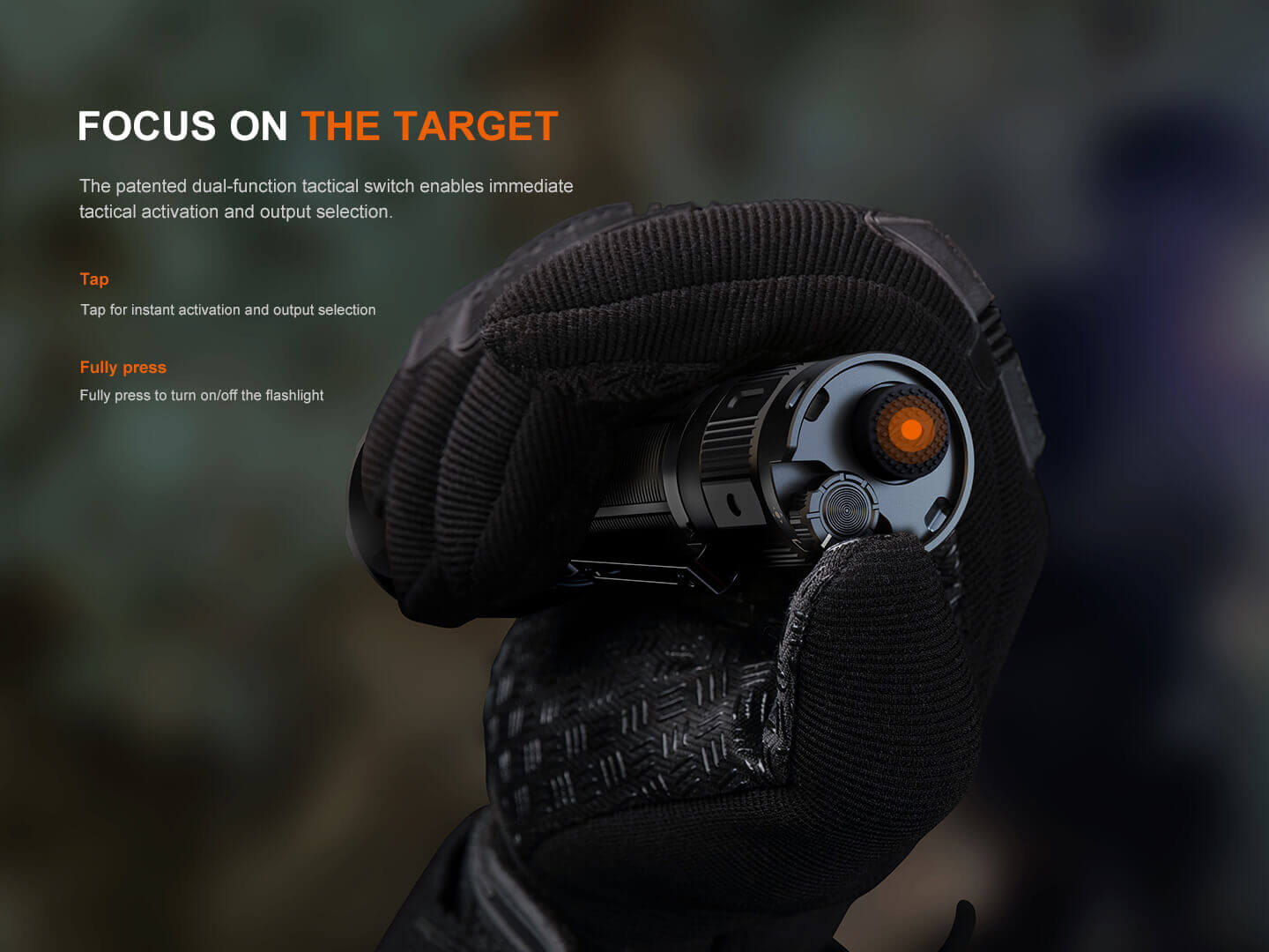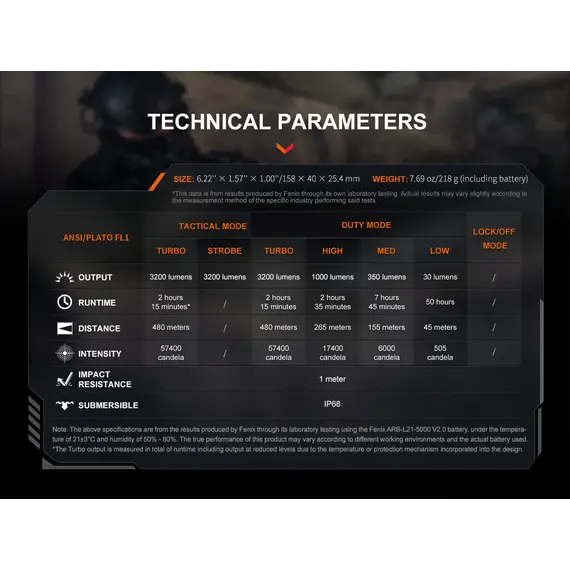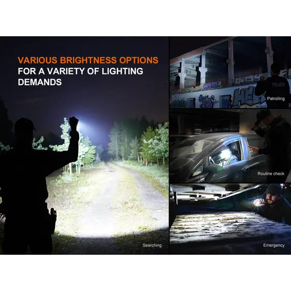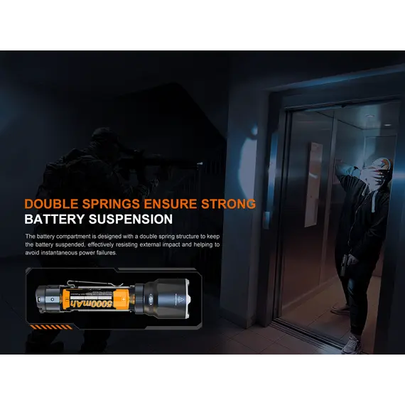 Φακός Fenix TK22R Επαναφορτιζόμενος με USB Ο Φακός Fenix TK22R διαθέτει μέγιστο 3200 lumens με απόσταση δέσμης έως και 480 μέτρα. Ο διακόπτης FlexiSensa σας επιτρέπει να κάνετε εναλλαγή μεταξύ της λειτουργίας Tactical, μόνο για Turbo/Strobe, και της λειτουργίας Duty σε ένα πάτημα για όλα τα επίπεδα φωτεινότητας και της λειτουργίας Lock Out για αποφυγή τυχαίας ενεργοποίησης. Η έξυπνη μνήμη θυμάται το τελευταίο επίπεδο φωτεινότητας στο οποίο έχετε πρόσβαση, και στις δύο λειτουργίες. Επαναφορτίστε γρήγορα τον φακό ξεβιδώνοντας το κάλυμμα της θύρας και συνδέοντας το καλώδιο USB Type-C. Η κρουστική στεφάνη διαθέτει μύτες που σπάνε γυαλί. Ανθεκτικό στις κρούσεις και αδιάβροχο ακόμα κι αν η θύρα φόρτισης είναι εκτεθειμένη.