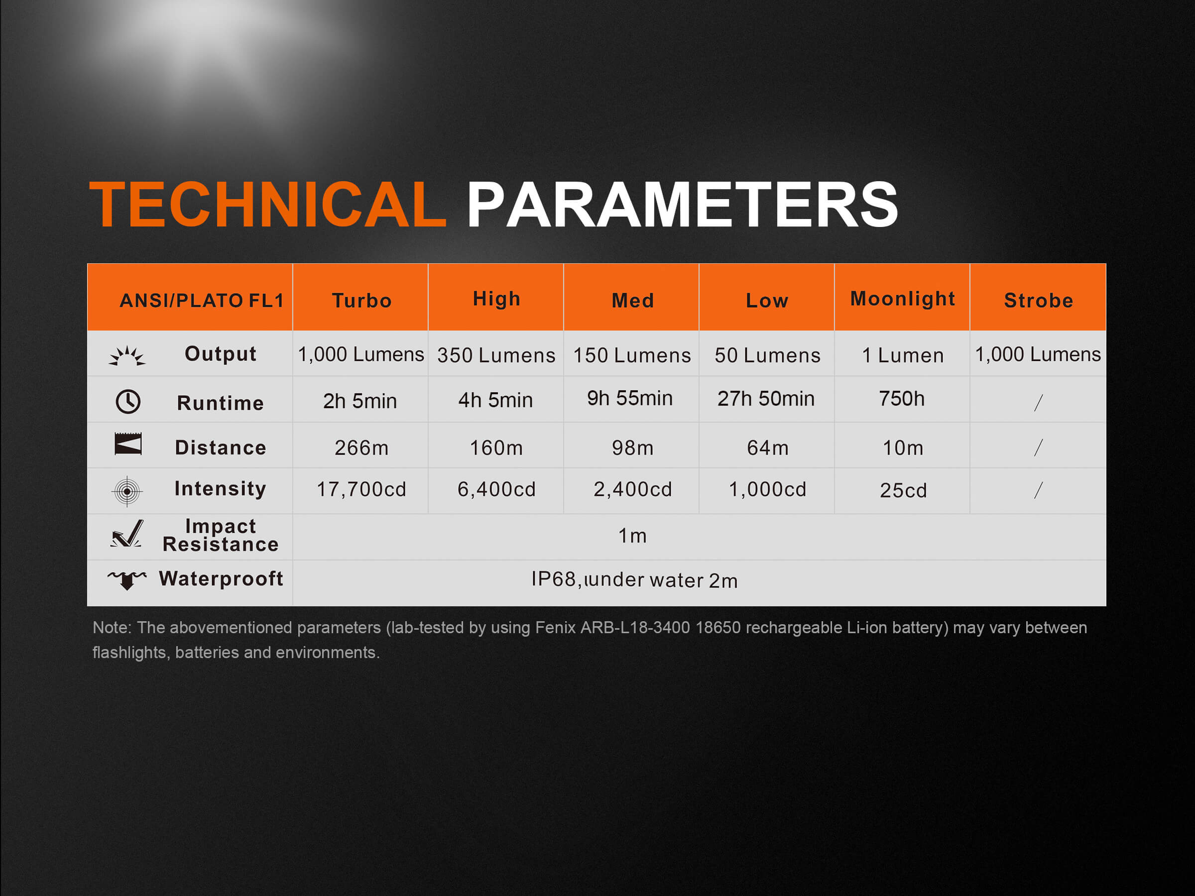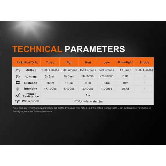 Μέγιστη φωτεινότητα: 1000 Lumens