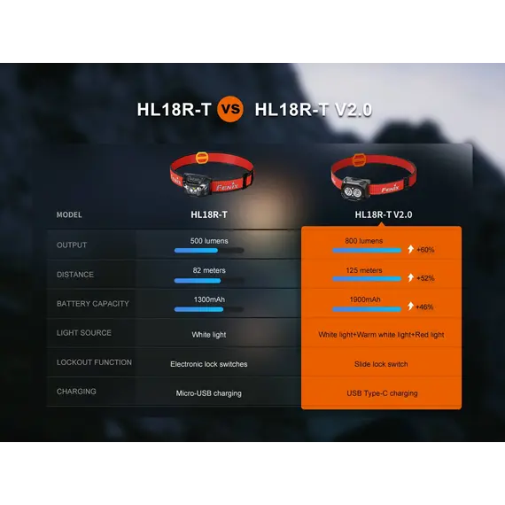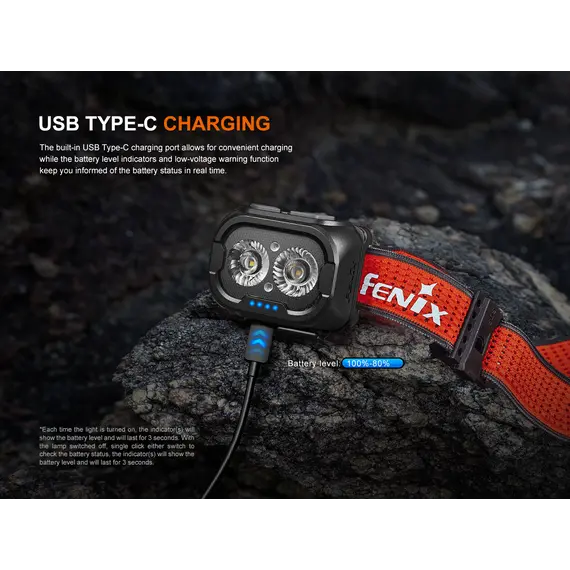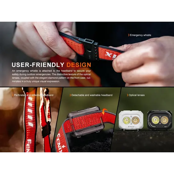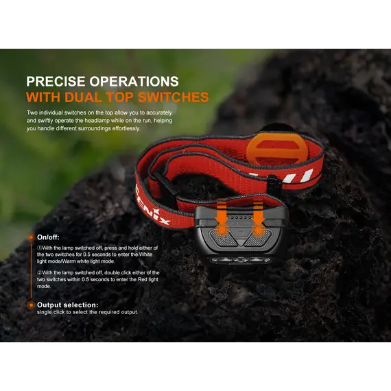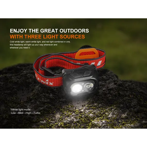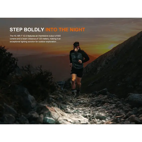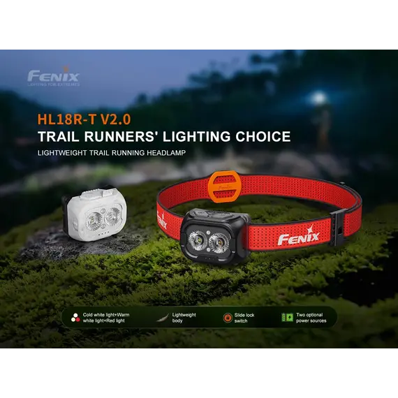 Φακός Κεφαλής Fenix HL18R-T V2.0 Επαναφορτιζόμενος Ο φακός κεφαλής Fenix HL18R-T V2.0 είναι κατασκευασμένος για όσους αρνούνται να επιβραδύνουν. Διαθέτει μέγιστη φωτεινότητα 800 lumens και απόσταση δέσμης 125 μέτρων, είναι ιδανικός για τζόκινγκ ή και ολονύχτιες εκδρομές. Επιλέξτε μεταξύ των λειτουργιών λευκού, θερμού λευκού και κόκκινου φωτός με τα εύχρηστα επάνω διπλά κουμπιά, επιτρέποντας γρήγορες και ακριβείς αλλαγές λειτουργίας. Σε μόλις 103 Γραμμάρια, είναι ένας εξαιρετικά ελαφρύς προβολέας—ιδανικός για τρέξιμο. Ο HL18R-T V2.0 είναι επίσης εξοπλισμένο με συρόμενο διακόπτη κλειδώματος για την αποφυγή τυχαίας ενεργοποίησης και σύστημα κεφαλόδεσμου SPORT fit διπλής κατεύθυνσης με περιστροφικό επιλογέα που ρυθμίζεται εύκολα για ασφαλή και άνετη εφαρμογή. Επαναφορτίστε με USB-C ή αλλάξτε μπαταρίες 3x AAA όταν χρειάζεται. Όποια πρόκληση κι αν είναι μπροστά σας, ο προβολέας Fenix HL18R-T V2.0 είναι κατασκευασμένος για να σας κρατά δυνατούς.