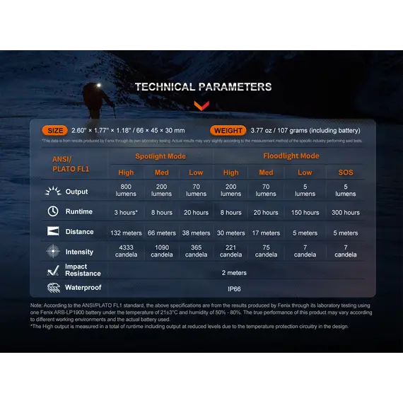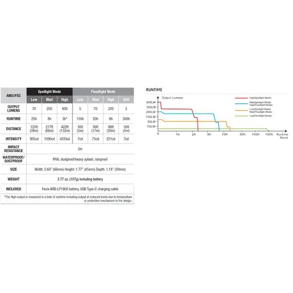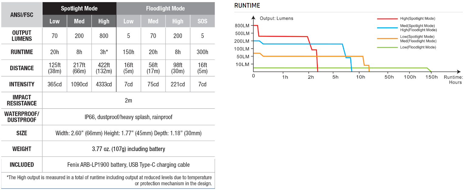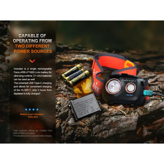 Μπαταρία: Αποσπώμενη επαναφορτιζόμενη μπαταρία Fenix ARB-LP1900 battery Συμπεριλαμβάνετε , λειτουργεί και με 3*ΑΑΑ Δεν συμπεριλαμβάνονται