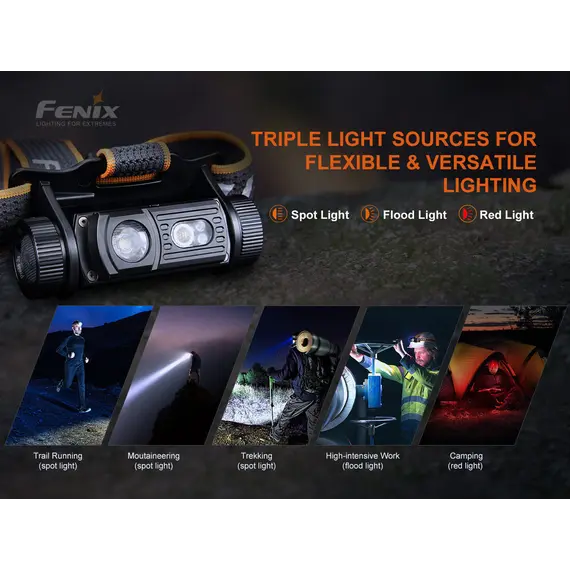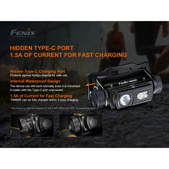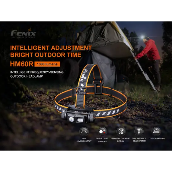Φακός Κεφαλής Fenix HM60R Επαναφορτιζόμενος Ο Φακός Κεφαλής Fenix HM60R που διαθέτει τρεις τύπους φωτός—έναν φωτισμό δέσμης (Spotlight) για φωτισμό μεγάλων αποστάσεων, έναν φωτισμό πλημμύρας (Floodlight) με ουδέτερο λευκό φως για καλύτερη απόδοση χρωμάτων και κόκκινο φως για τη διατήρηση της νυχτερινής όρασής σας και για εργασίες από κοντά. Η μπαταρία ARB-L18-3400 li-ion που περιλαμβάνεται είναι επαναφορτιζόμενη USB Type-C και η θύρα είναι κρυμμένη με εσωτερική αδιάβροχη διεπαφή. Ένας μεγάλος, φιλικός προς τα γάντια διακόπτης σας επιτρέπει να έχετε πρόσβαση στη λειτουργία φωτισμού που χρειάζεστε για την κατασκήνωση, το μονοπάτι ή τον χώρο εργασίας. Ένα επιπλέον μοναδικό χαρακτηριστικό του επαναφορτιζόμενου φακού Fenix HM60R είναι ο αισθητήρας συχνότητας βηματισμού που μπορεί να είναι ένα πλεονέκτημα για όσους θέλουν να το χρησιμοποιήσουν για τρέξιμο. *Προσοχή ο φακός δεν είναι συμβατός με την μπαταρία Fenix ARB-L18-4000U