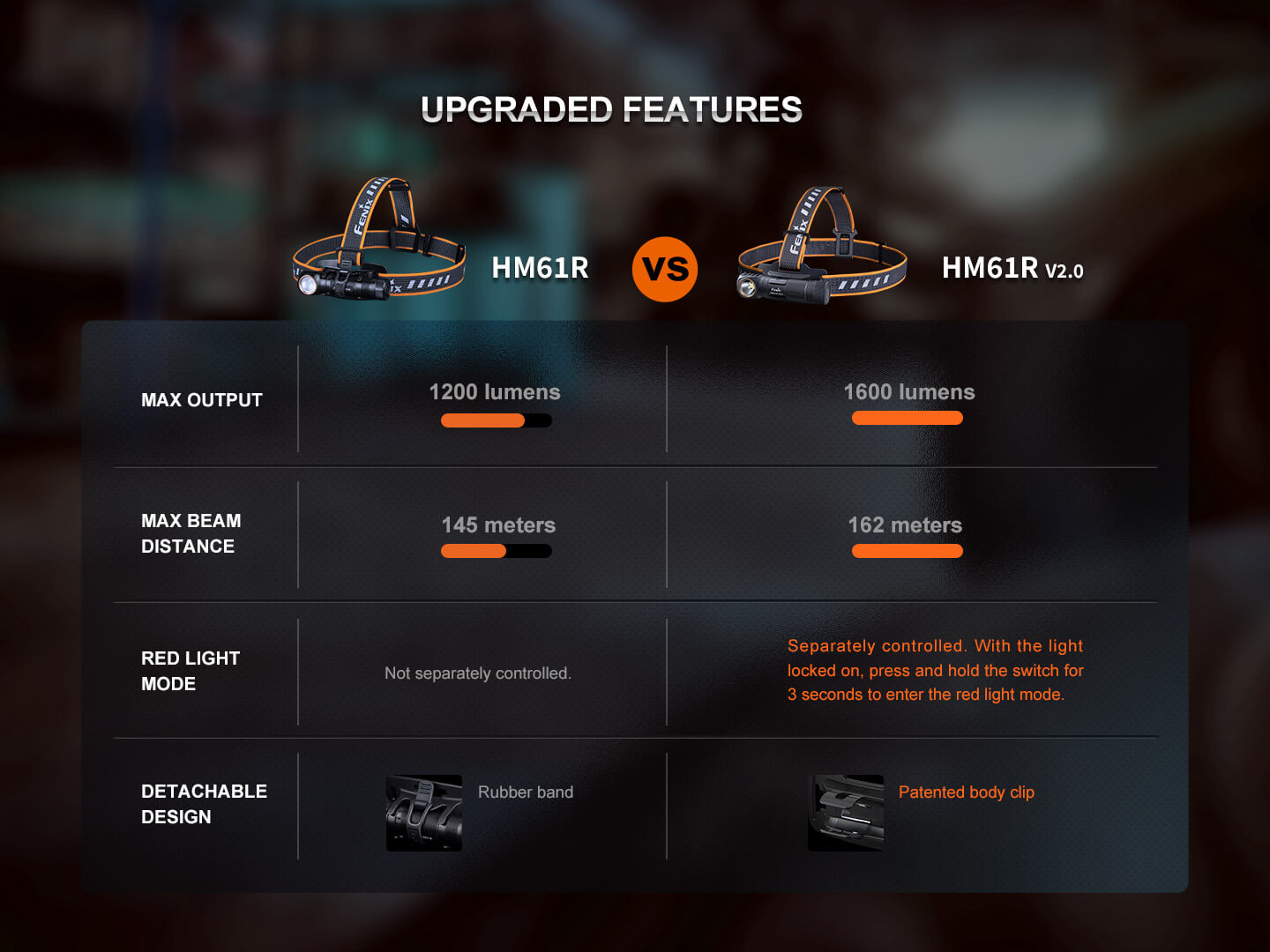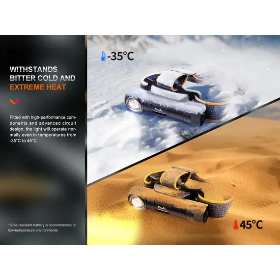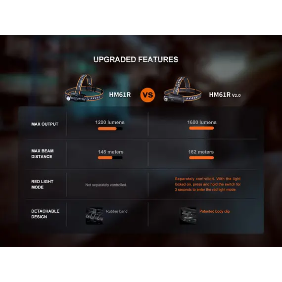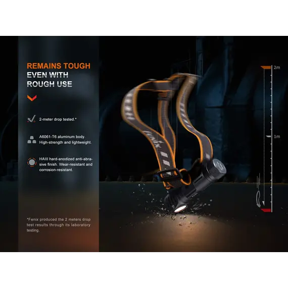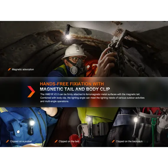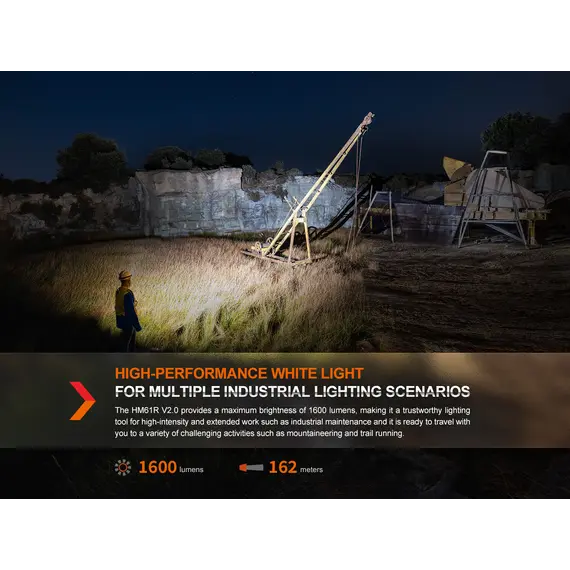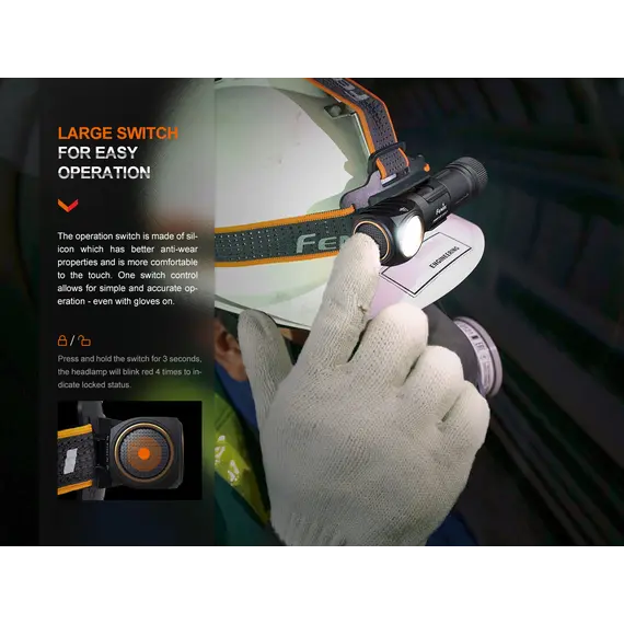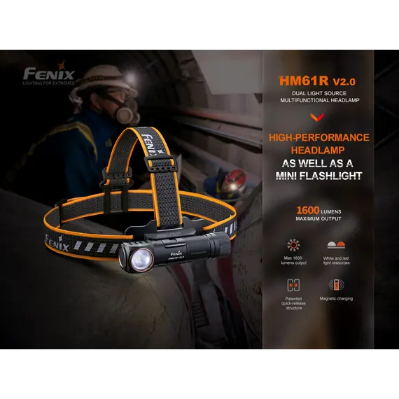 Ο Φακός Κεφαλής Fenix HM61R V2.0 έχει αναβαθμιστεί για καλύτερη απόδοση. Ο μεγάλος και κατάλληλος για χρήση με γάντια διακόπτης σας επιτρέπει να εναλλάσσετε γρήγορα πέντε επίπεδα φωτεινότητας, συμπεριλαμβανομένης της λειτουργίας turbo max 1600. Πατήστε δύο φορές το διακόπτη για να αποκτήσετε πρόσβαση σε τρεις λειτουργίες κόκκινου φωτός ανεξάρτητα. Ο Fenix HM61R V2.0 είναι επίσης ένας εξαιρετικός φακός δεξιάς γωνίας όταν αφαιρείται από το κεφαλόδεσμό του, και διαθέτει μαγνητική βάση και κλιπ ζώνης για συνεχή χρήση hands-free. Τροφοδοτούμενο από την αποσπώμενη μπαταρία 18650 υψηλής χωρητικότητας, μπορεί να εκπέμπει φως έως και 300 ώρες στη λειτουργία Eco. Ο Fenix HM61R V2.0 διαθέτει μαγνητική φόρτιση, η ένδειξη στάθμης μπαταρίας και η στεγανότητά του (IP68) συμπληρώνουν τα χαρακτηριστικά που καθιστούν τον Φακό Κεφαλής Fenix HM61R V2.0 το απόλυτο εργαλείο φωτισμού.
