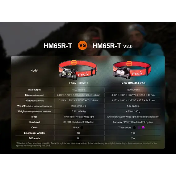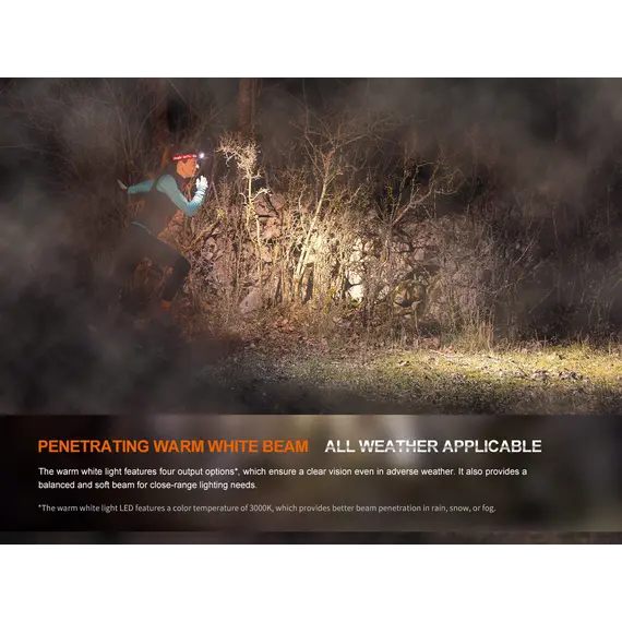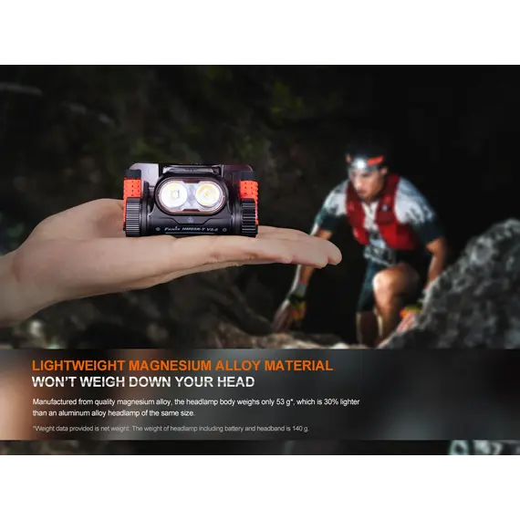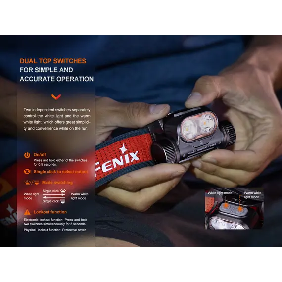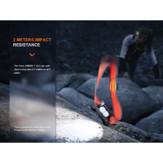 Φακός Κεφαλής Fenix HM65R-T V2.0 Επαναφορτιζόμενος Ο Φακός Κεφαλής Fenix HM65R-T V2.0 έχει αναβαθμιστεί ώστε να είναι το πιο άνετο εργαλείο φωτισμού hands-free στην αγορά. Ο νέος κεφαλόδεσμος SPORT fit είναι μεγαλύτερος, διαθέτει βελτιωμένο περιστροφικό επιλογέα ρύθμισης για πιο ακριβή έλεγχο και περιλαμβάνει ενσωματωμένη σφυρίκτρα για καταστάσεις έκτακτης ανάγκης. Φακός Κεφαλής Fenix HM65R-T V2.0 αποδίδει ένα ψυχρό λευκό φως και ένα ζεστό φως. Επιλέξτε ζεστό φως για καλύτερη διεισδυτική απόδοση σε συνθήκες ομίχλης. Ο Φακός Κεφαλής Fenix HM65R-T V2.0 διαθέτει ένδειξη στάθμης μπαταρίας, και μπορεί να λειτουργήσει έως και 300 ώρες συνεχώς στη χαμηλότερη ρύθμιση. Εξαιρετικός για δρομείς μονοπατιών, στη δουλειά ή απλώς για καθημερινές ανάγκες φωτισμού hands-free, ο προβολέας Fenix HM65R-T V2.0 ταιριάζει απόλυτα.