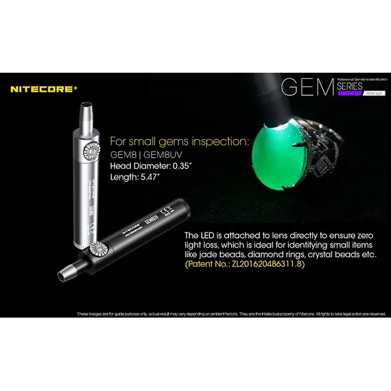 Τα μοντέλα GEM8 / GEM8UV είναι ειδικά σχεδιασμένα για τον έλεγχο μικρού μεγέθους πολύτιμων λίθων όπως χάντρες νεφρίτη, διαμαντένια δαχτυλίδια, κρυστάλλινες χάντρες κ.α.