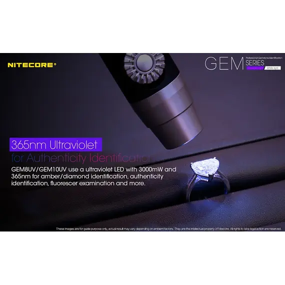 Η χρήση του υπεριώδους φωτισμού με συχνότητα 365nm είναι ιδανική για την αναγνώριση των διαμαντιών, την επιβεβαίωση της αυθεντικότητας τους, τον έλεγχο του φθορισμού και άλλα.