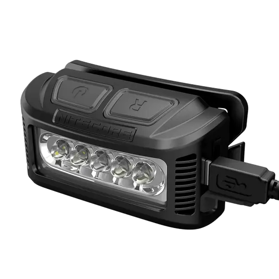 Ελαφρύς φακός κεφαλής με ενσωματωμένη επαναφορτιζόμενη μπαταρία Li-ion. Μεγάλο εύρος φωτισμού έως και 170 μοίρες και ρυθμιζόμενος καθ’ ύψος έως και 60 μοίρες, ιδανικός για εργασίες και νυχτερινό περπάτημα. Μικρό βάρος 65 gr και μεγάλη διάρκεια λειτουργίας έως και 150 ώρες χρησιμοποιεί 5 LED με μέγιστη ισχύ 160 Lumens και κόκκινο φωτισμό. Διατηρεί την ικανότητα φωτισμού κατά την διάρκεια φόρτισης. Η ενσωματωμένη κα΄τω από τον διακόπτη ενδεικτική λυχνία ενημερώνει για την ισχύ που έχει απομείνει στην μπαταρία. Πατώντας και τους δύο διακόπτες μαζί ενεργοποιείται η προστασία από ατυχή ενεργοποίηση. Αδιάβροχος και ανθεκτικός στην σκόνη σύμφωνα με το πρότυπο IP66 και ανθεκτικός σε πτώσεις έως και από 1,5 μέτρα ύψος.