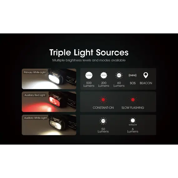 Εξαιρετικά ελαφρύς φακός κεφαλής για εξωτερικές δραστηριότητες με διπλή πηγή φωτισμού