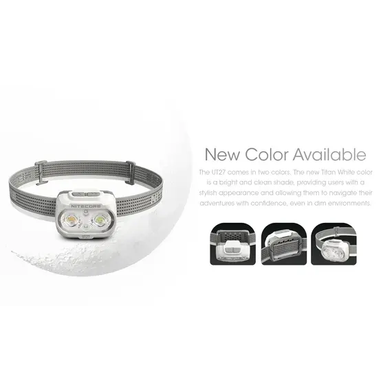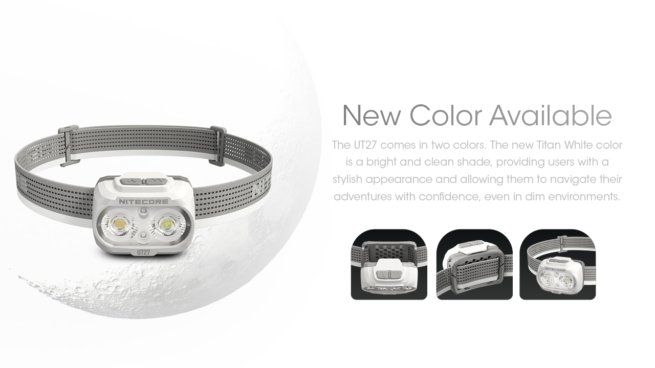 Ο φακός κεφαλής NITECORE UT27 διατίθεται σε δύο χρωματισμούς. Ο νέος χρωματισμός του Τιτάνιου Λευκού είναι μια φωτεινή και καθαρή