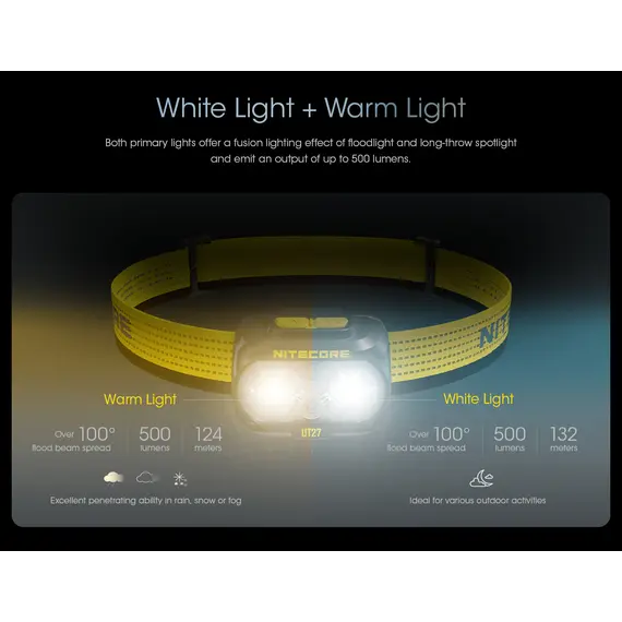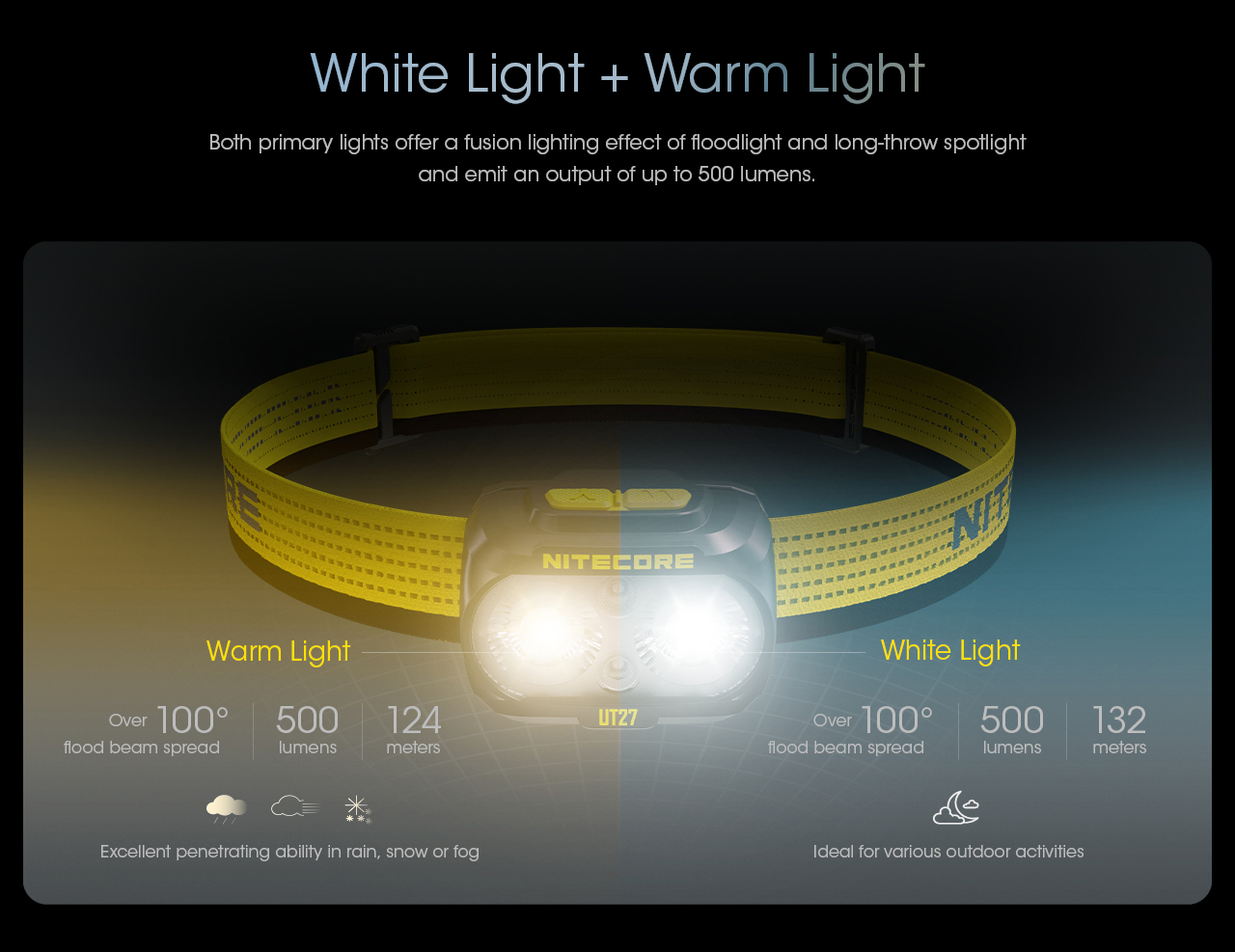 01. Πανάλαφρος εξαιρετικός φακός κεφαλής διπλής δέσμης NITECORE UT27