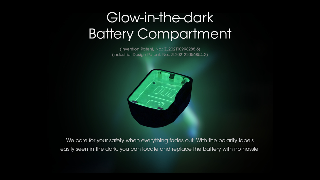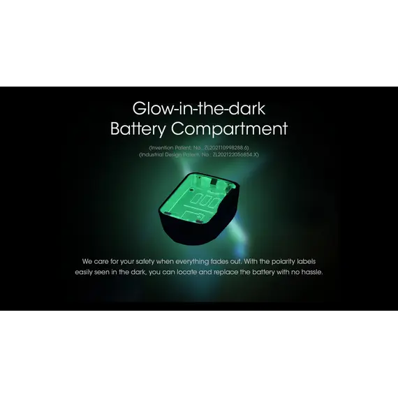 – Φωσφορίζουσα θήκη μπαταριών για εύκολη αντικατάσταση και εντοπισμό της μπαταρίας σε συνθήκες χαμηλού φωτισμού