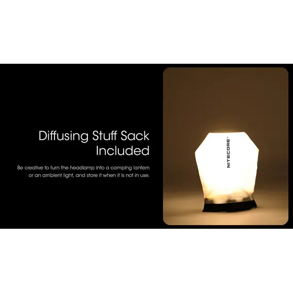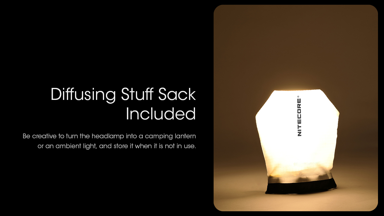 – Περιλαμβάνει ένα ειδικά σχεδιασμένο ελαφρύ, φιλικό προς το δέρμα και αναπνέον ιμάντα κεφαλής και έναν σάκο διάχυσης φωτισμού
