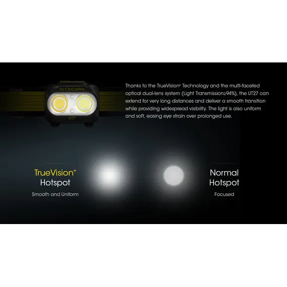 Χάρη στην τεχνολογία TrueVision+ και το πολύπλευρο οπτικό σύστημα διπλού φακού (Μετάδοση Φωτισμού ≥94%), ο UT27 μπορεί να