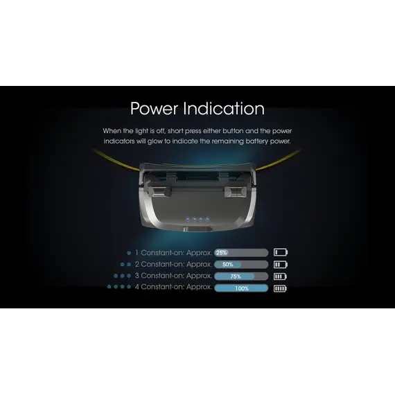 Όταν ο φακός είναι απενεργοποιημένος, πατήστε σύντομα ένα από τα δύο κουμπιά και οι ενδεικτικές λυχνίες ισχύος θα ανάψουν για να