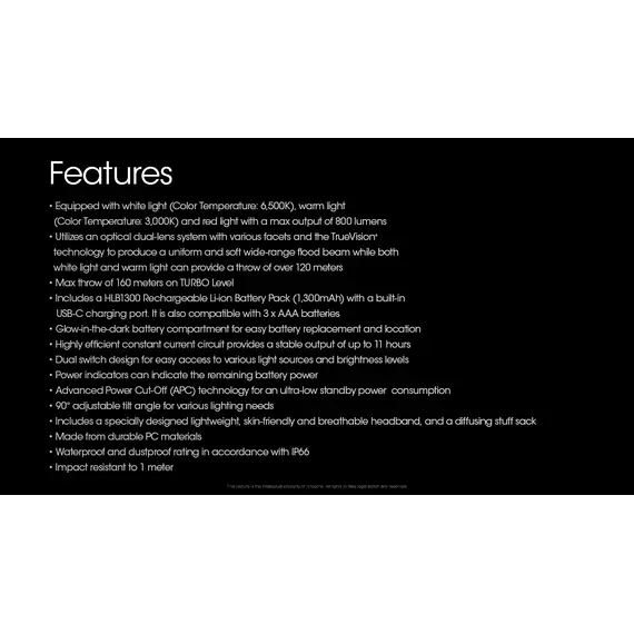 – Περιλαμβάνει μια επαναφορτιζόμενη μπαταρία ιόντων λιθίου HLB1300 (1.300mAh) με ενσωματωμένη θύρα φόρτισης USB-C.
