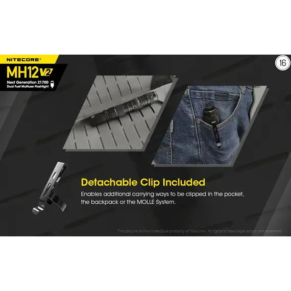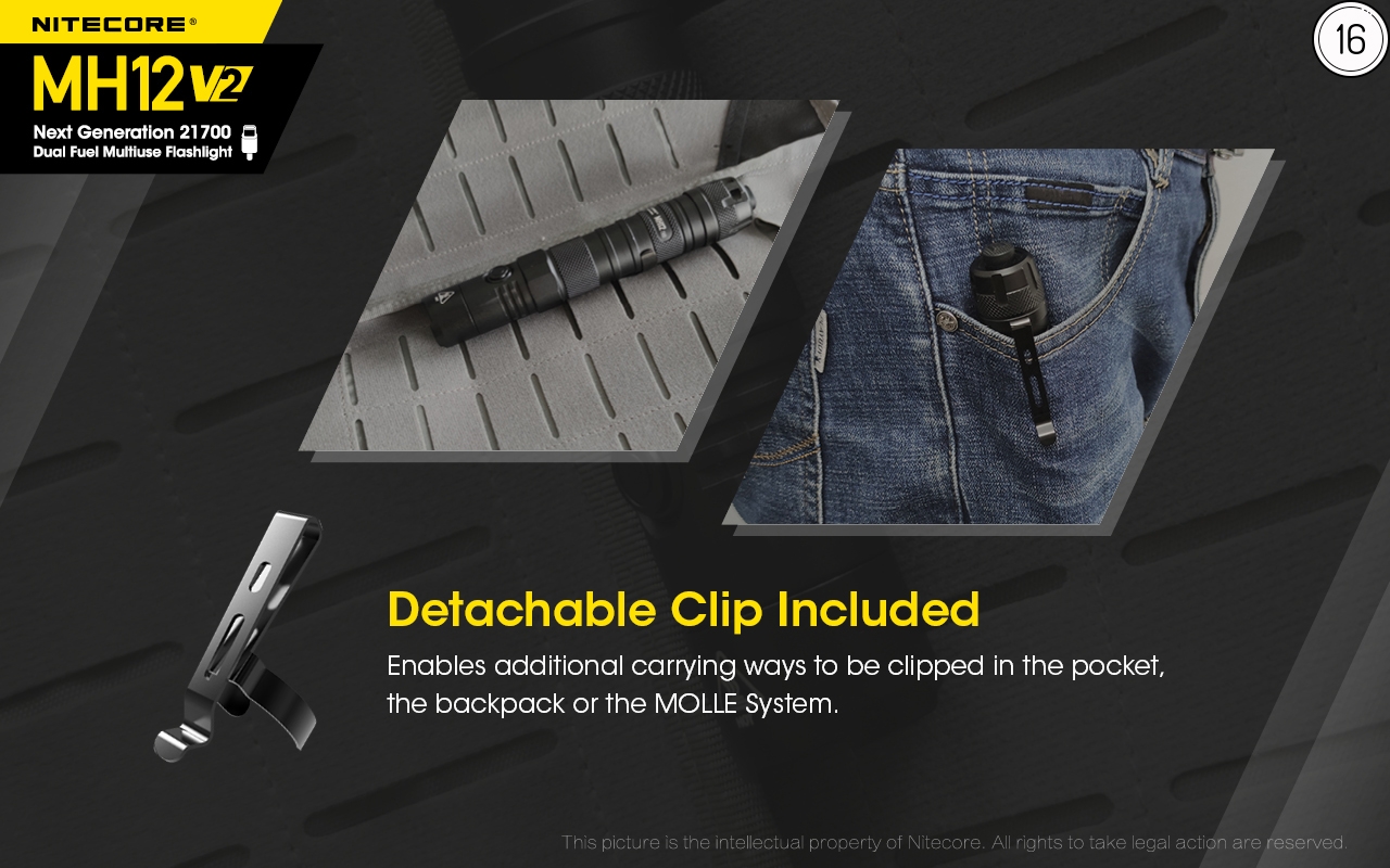 16. Συνοδεύεται επίσης από ένα ισχυρό ατσάλινο κλιπ συγκράτησης που επιτρέπει την ασφαλή μεταφορά του φακού σε σακίδια, στην τσέπη του παντελονιού κ.α.