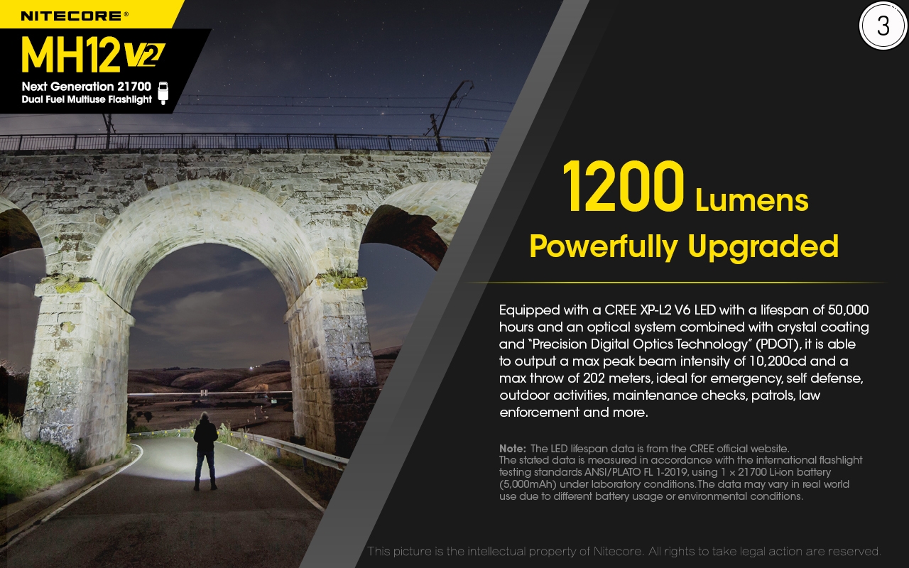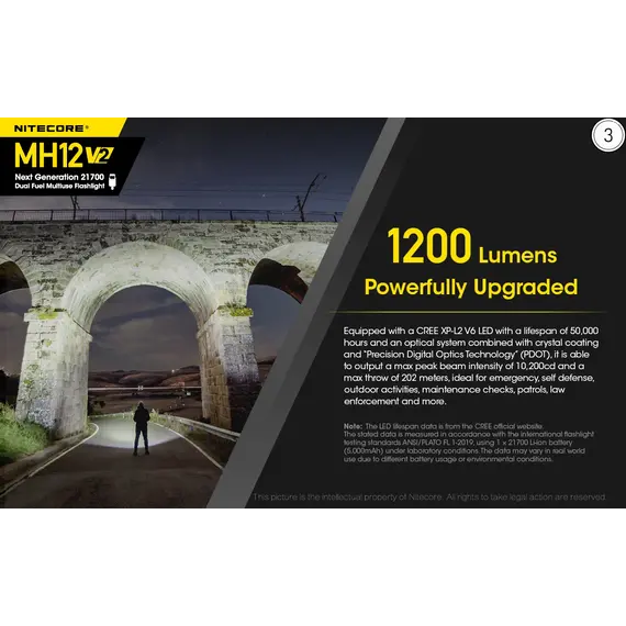 3. Είναι εφοδιασμένος με ένα πανίσχυρο LED CREE XP-L2 V6 με ικανότητα χρήσης για τουλάχιστον 50000 ώρες λειτουργίας που σε συνδυασμός με το οπτικό σύστημα