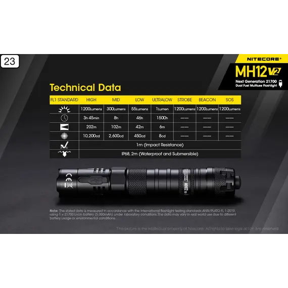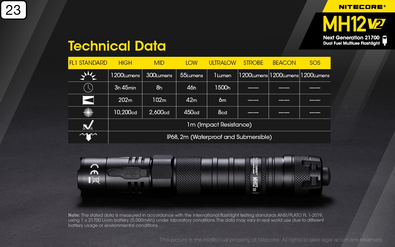 είναι ικανός να εκπέμψει δέσμη με ένταση 10200 κεριών και να φθάσει την απόσταση των 202 μέτρων καθιστώντας τον ιδανικό για καταστάσεις έκτακτης ανάγκης,