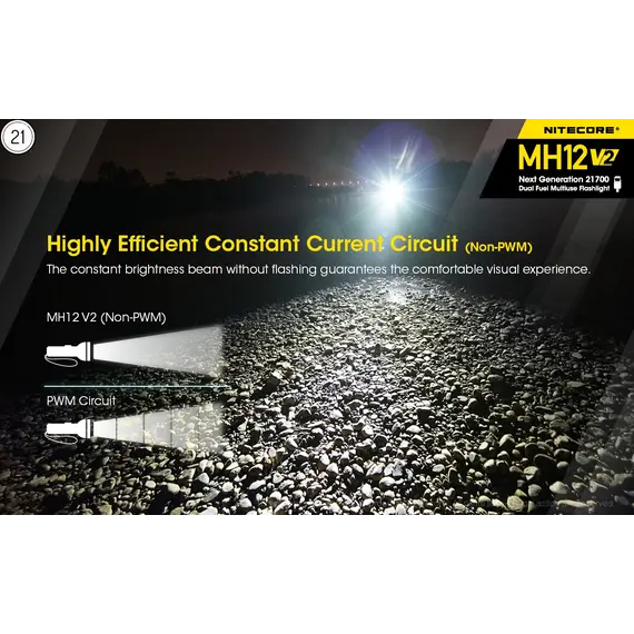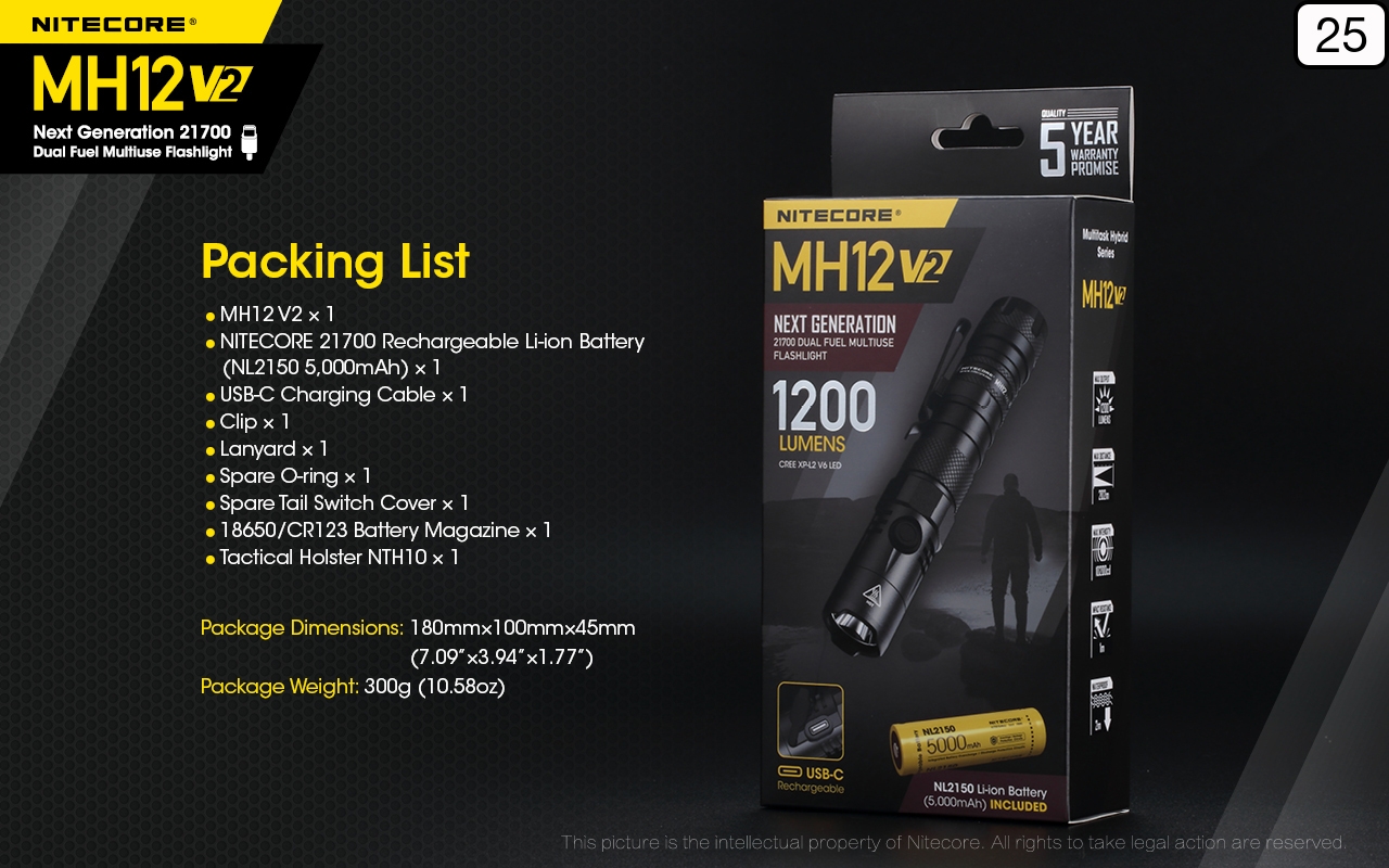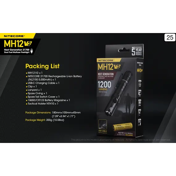 - Στην συσκευασία περιλαμβάνεται μία επαναφορτιζόμενη μπαταρία Li-ion NITECORE 21700 (NL2150 / 5000mAh)