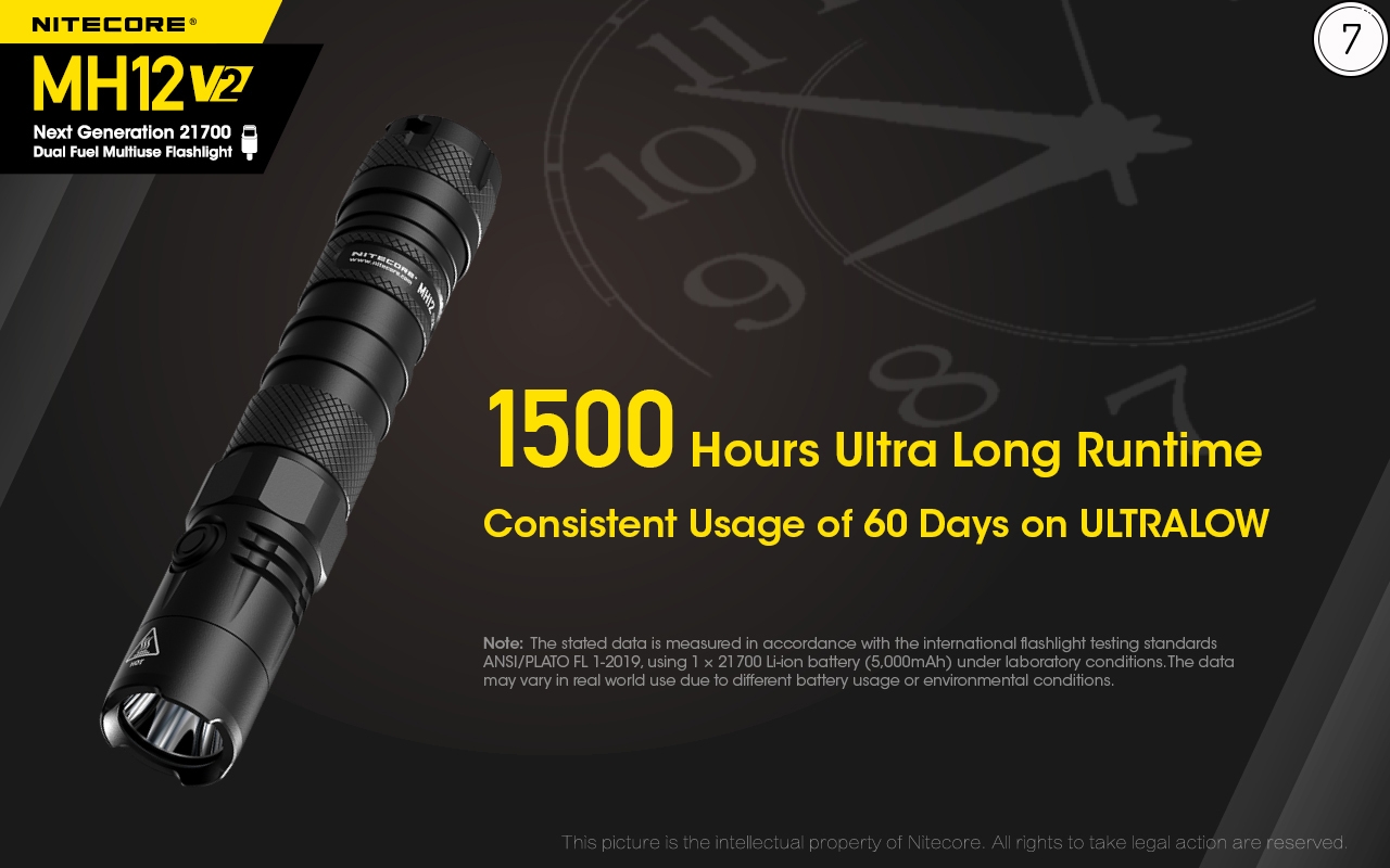 8. Η διάρκεια λειτουργίας του στην πιο χαμηλή ένταση μπορεί να φθάσει και τις 1500 ώρες που σημαίνει συνεχόμενη χρήση στην πιο χαμηλή ένταση για 60 ημέρες !