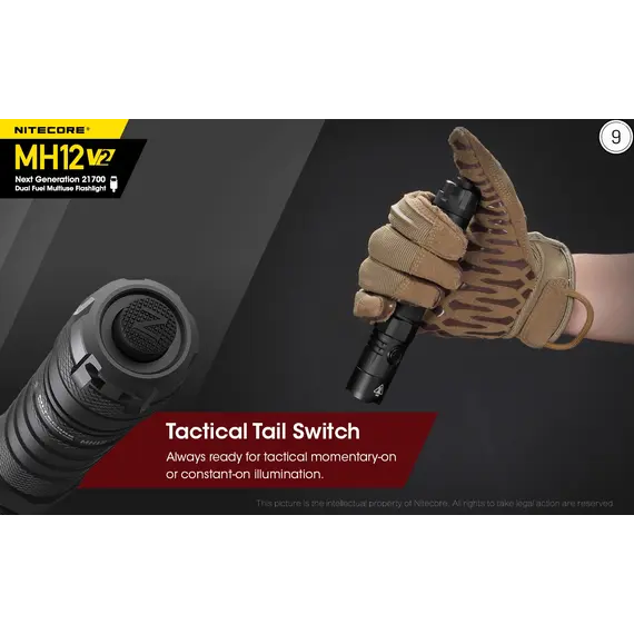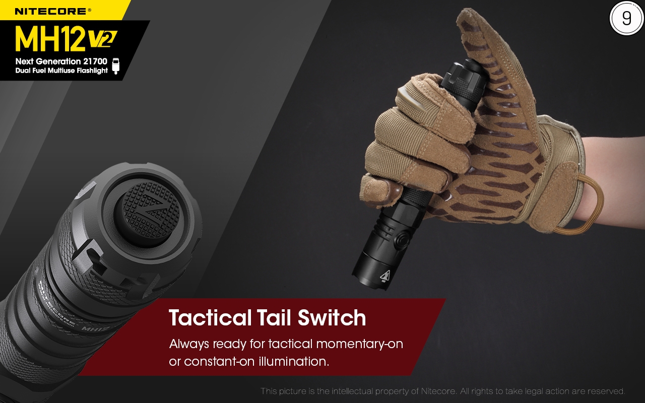 9. Ο οπίσθιος διακόπτης στο καπάκι ουράς είναι σχεδιασμένος για επιχειρησιακή χρήση. Πάντα έτοιμος τόσο για στιγμιαίο φωτισμό όσο και για τον μόνιμο φωτισμό.
