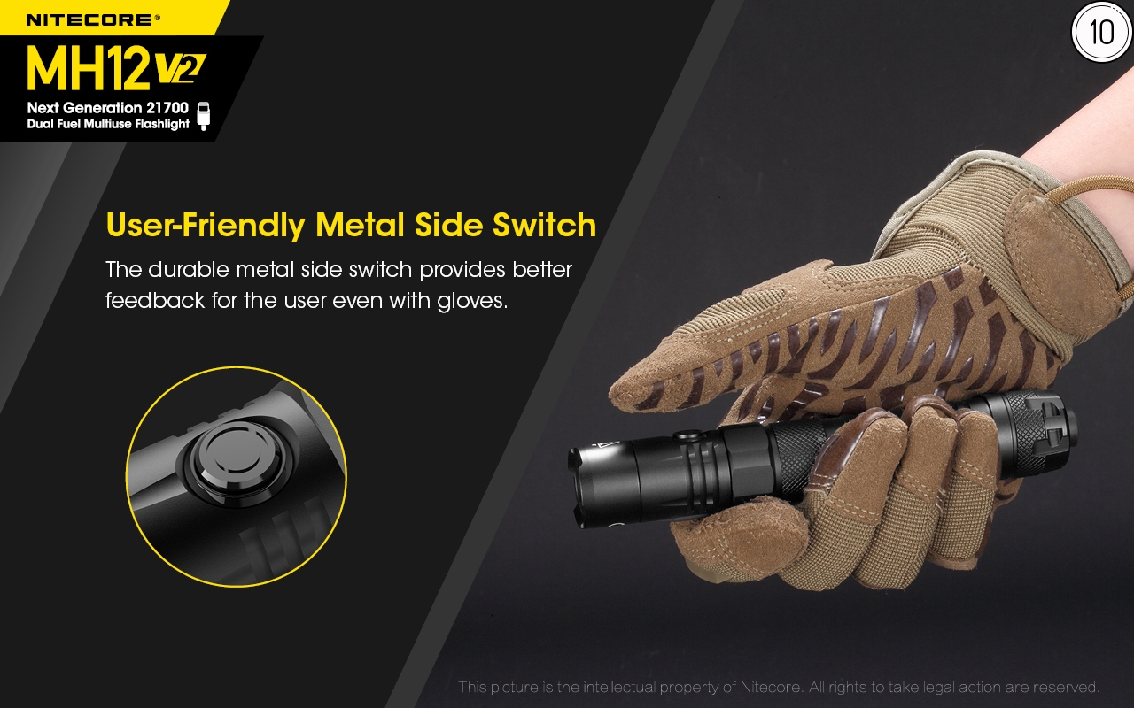 10. Ο φιλικός προς τον χρήστη πλάγιος μεταλλικός διακόπτης είναι ανθεκτικός και παρέχει καλύτερη ανταπόκριση στον χρήστη ακόμη και όταν αυτός φοράει γάντια.