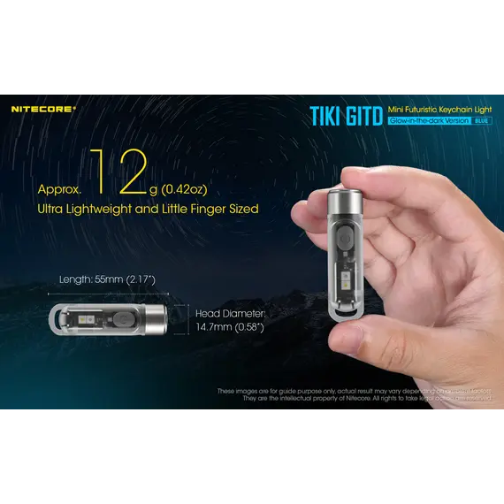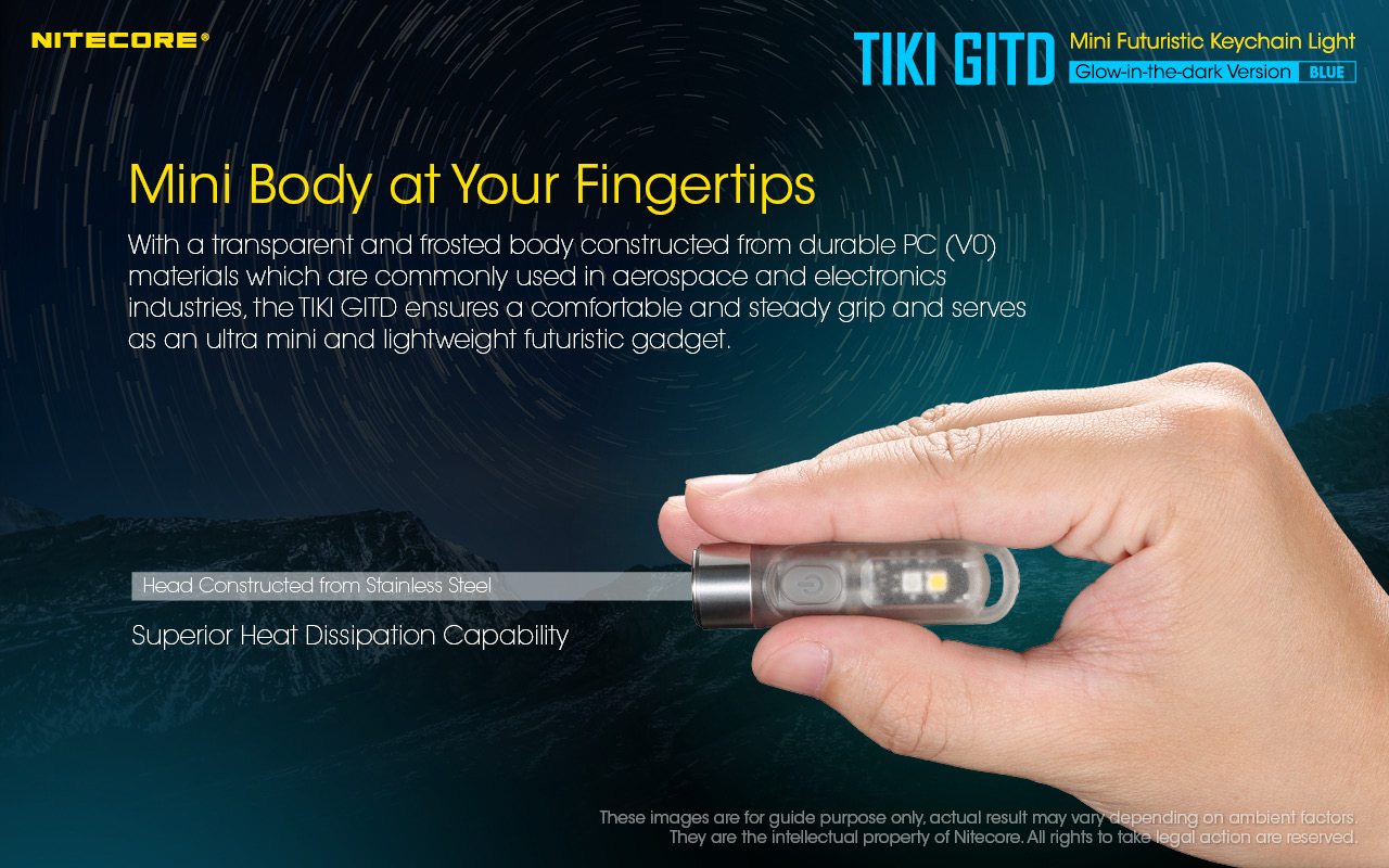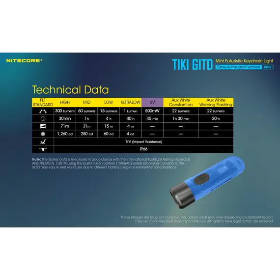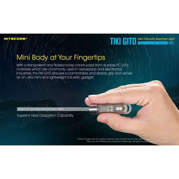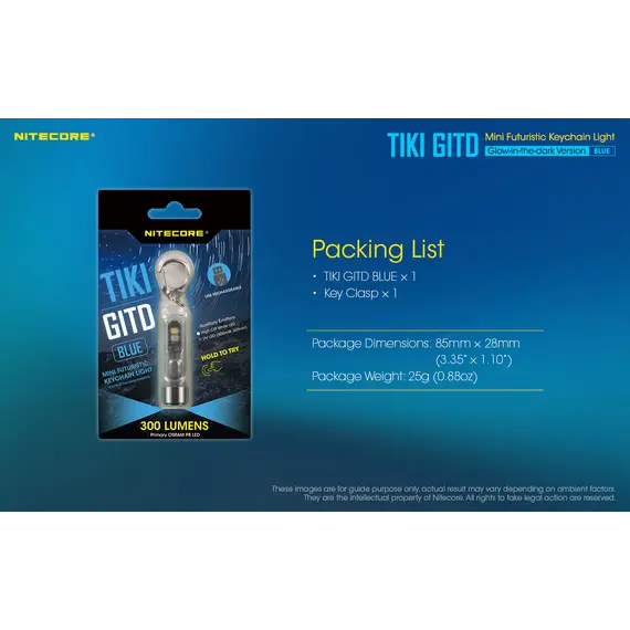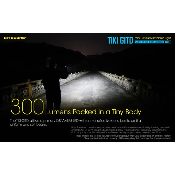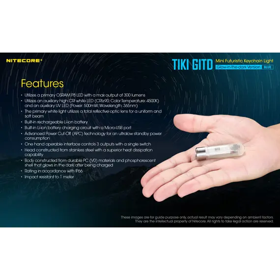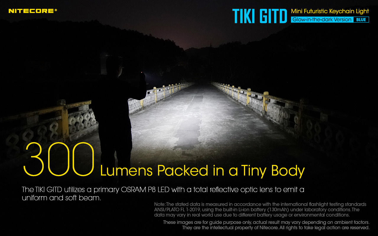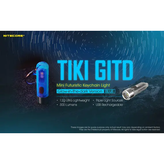 ΦΑΚΟΣ LED NITECORE TIKI GITD Blue, Glow-In-The-Dark, 300 lumens