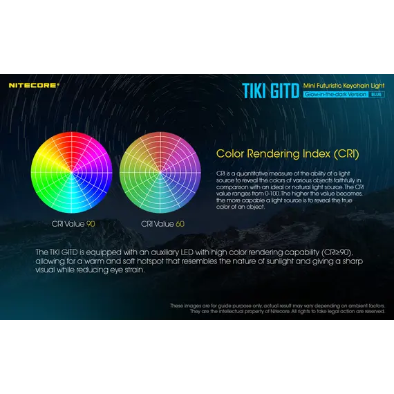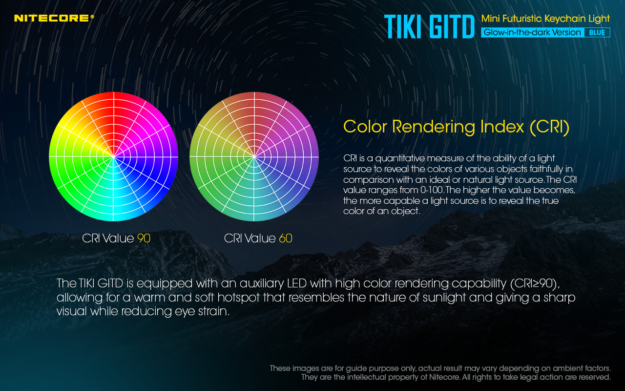 – Το TIKI GITD είναι εφοδιασμένο με ένα λευκό βοηθητικό LED με υψηλό δείκτη απόδοσης χρωμάτων (CRi>90) επιτρέποντας ένα θερμό και απαλό φωτισμό που προσομοιάζει το φυσικό ηλιακό φως δίνοντας καθαρή εικόνα κουράζοντας λιγότερο τα μάτια.