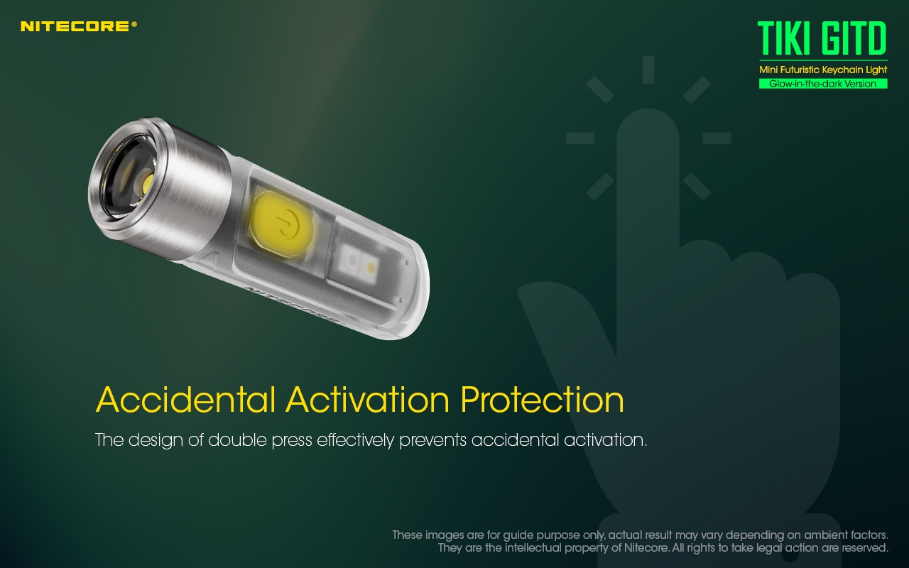 Ο σχεδιασμός για την ενεργοποίηση του φακού με διπλό γρήγορο πάτημα, προστατεύει από ατυχή ενεργοποίηση του φακού όταν π.χ. βρίσκεται μέσα σε τσάντα.