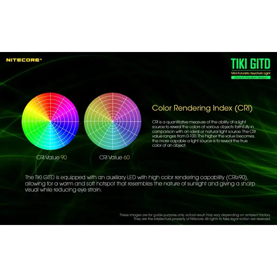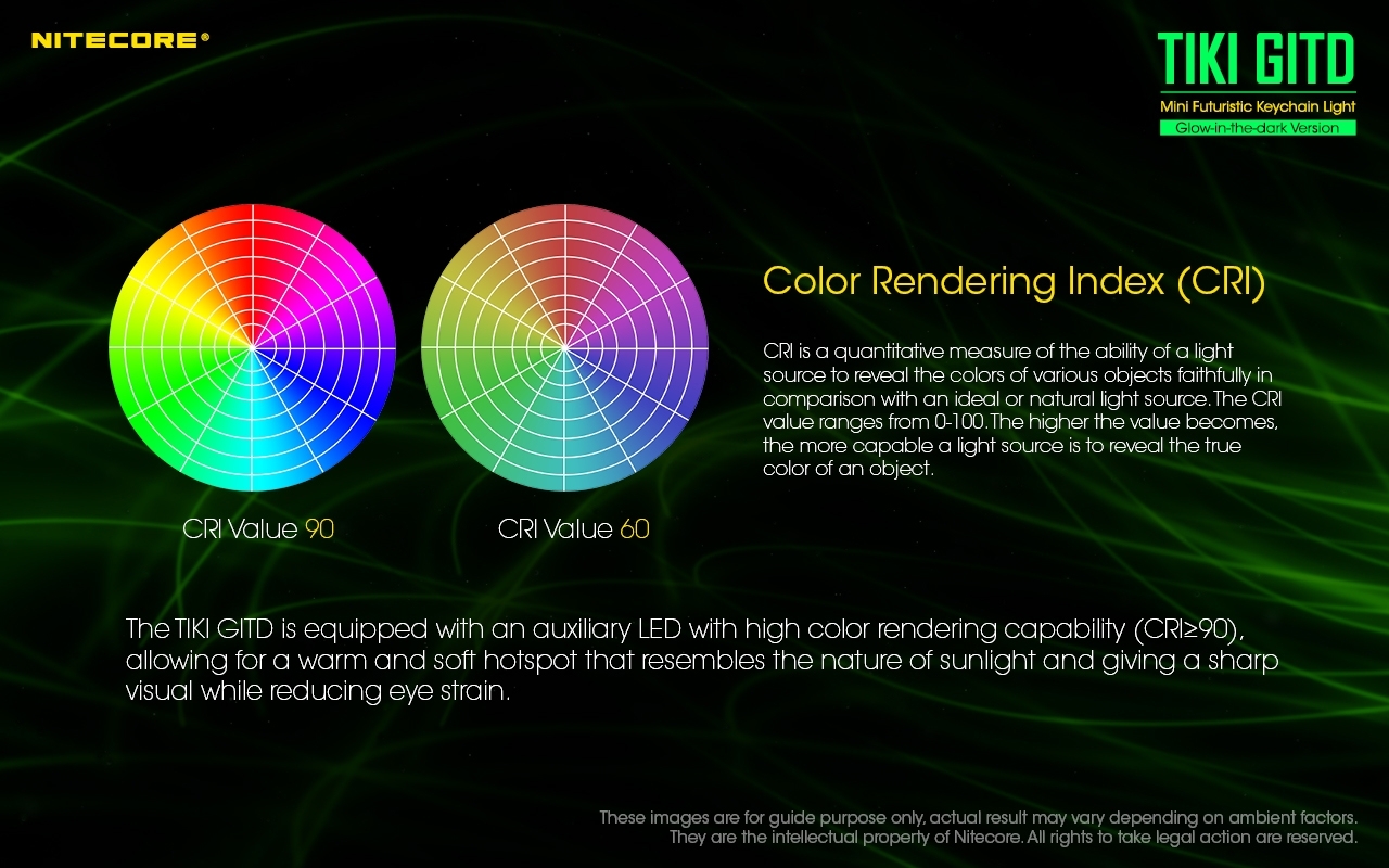 ο φωτισμός να αναδείξει τα φυσικά χρώματα. Ο TIKI GITD ενσωματώνει ένα λευκό βοηθητικό LED υψηλού CRi με βαθμό πάνω από 90 .
