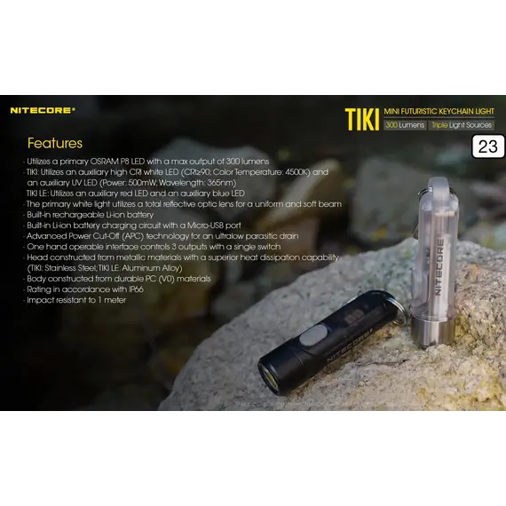 ΦΑΚΟΣ LED NITECORE TIKI LE, Black, 300 lumens