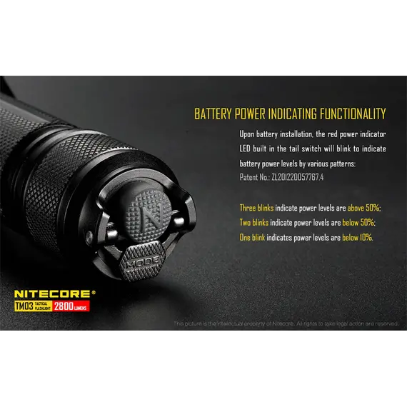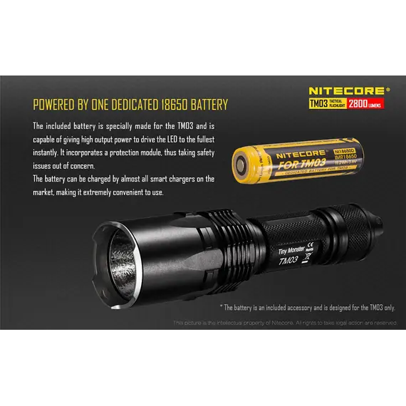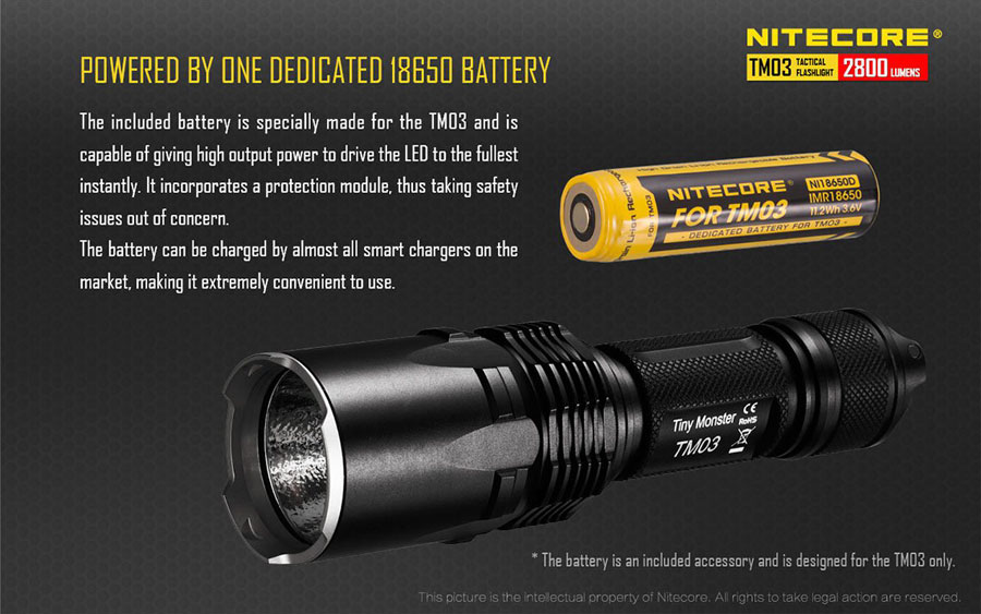 – Λειτουργεί με μία ειδικά κατασκευασμένη για αυτόν επαναφορτιζόμενη μπαταρία ΙΜΡ18650 για να αποδόσει το μέγιστο των 2800lumens.